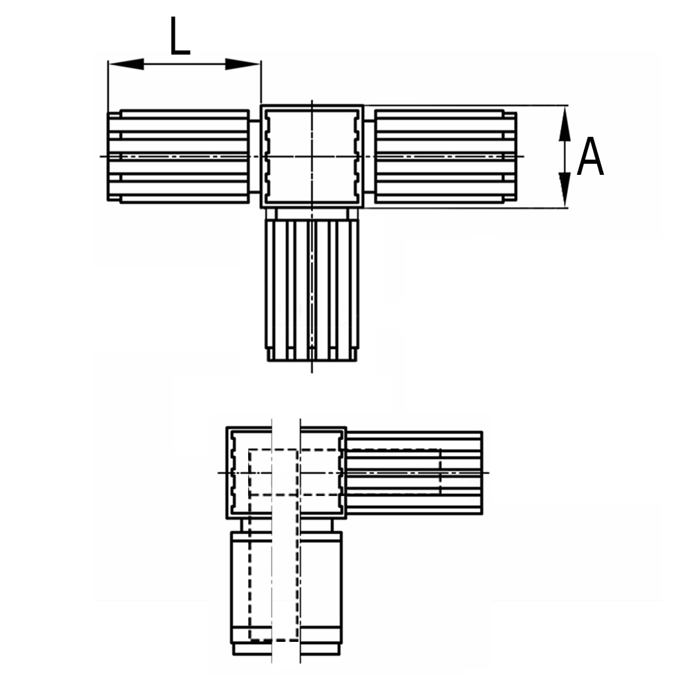 Raccord carré PA 25x25mm - 1.5mm - 2-parties - 3D4 - Noir