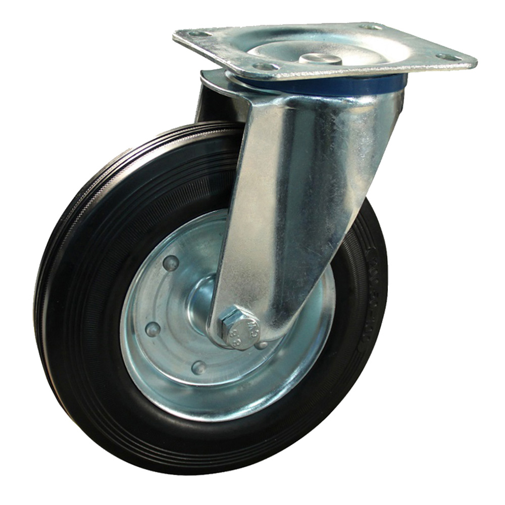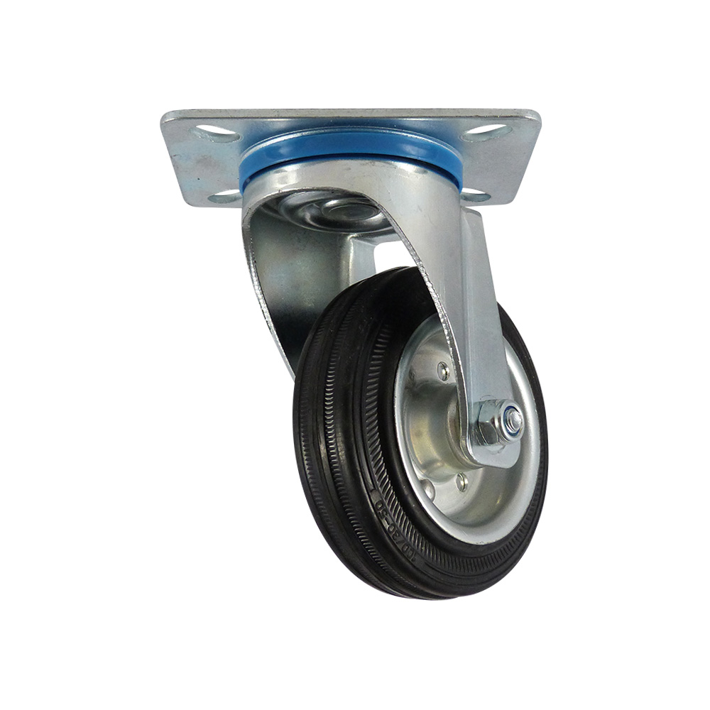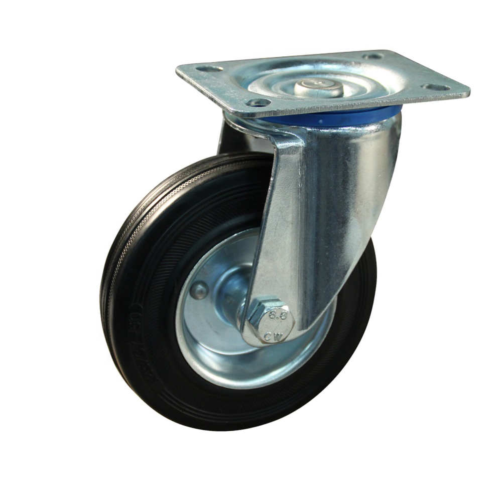 Roulette pivotante Ø160mm TPE - bande de roulement bleu caoutchouc / TPE - roulement à rouleaux - fixation de la plaque 105x105mm - Acier