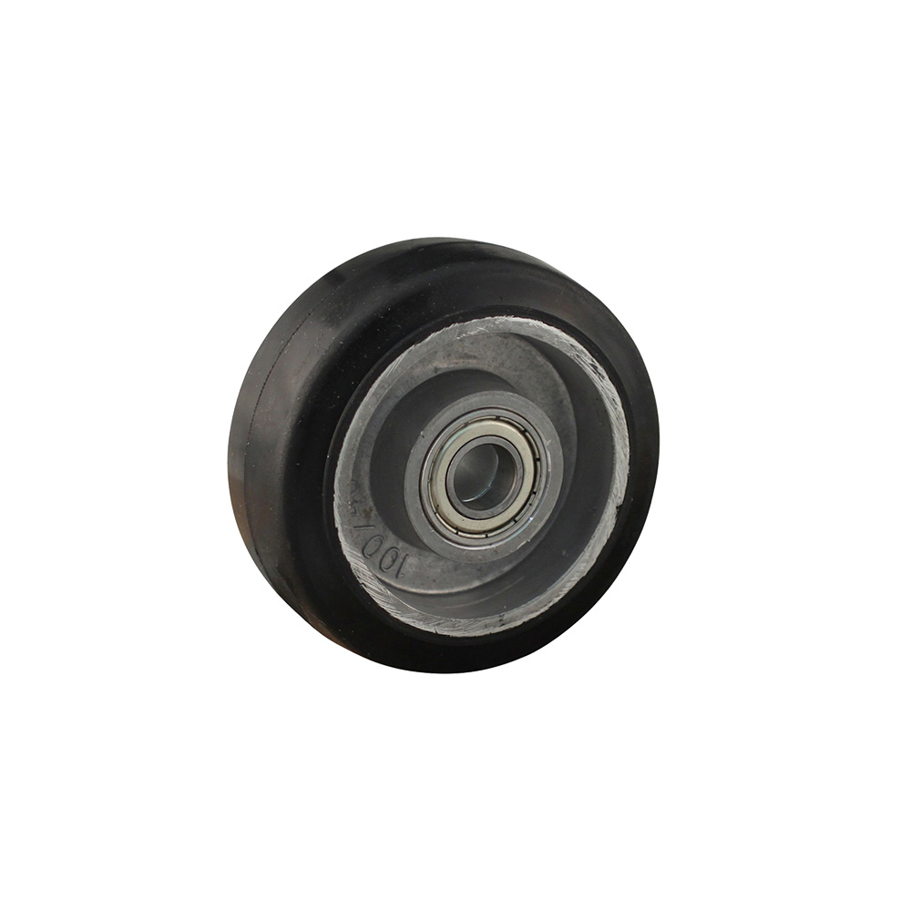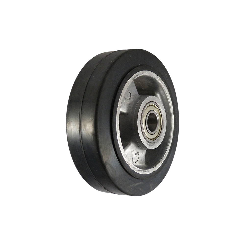 Roue Ø125mm Aluminium - bande de roulement bleu caoutchouc / TPE - roulement à billes - forte charge - trou d'arbre Ø15mm - Aluminium