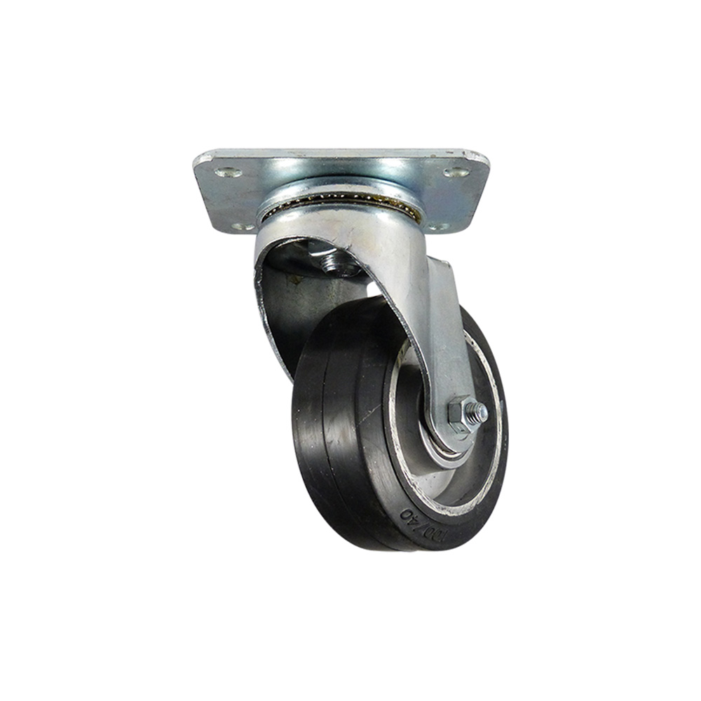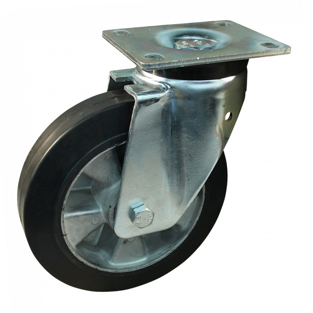 Roulette fixe Ø160mm Aluminium - bande de roulement bleu caoutchouc / TPE - roulement à billes - forte charge - fixation de la plaque 140x110mm - Acier