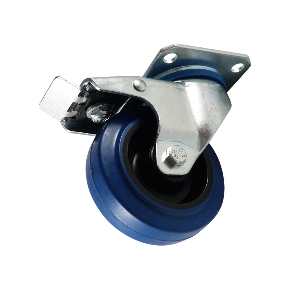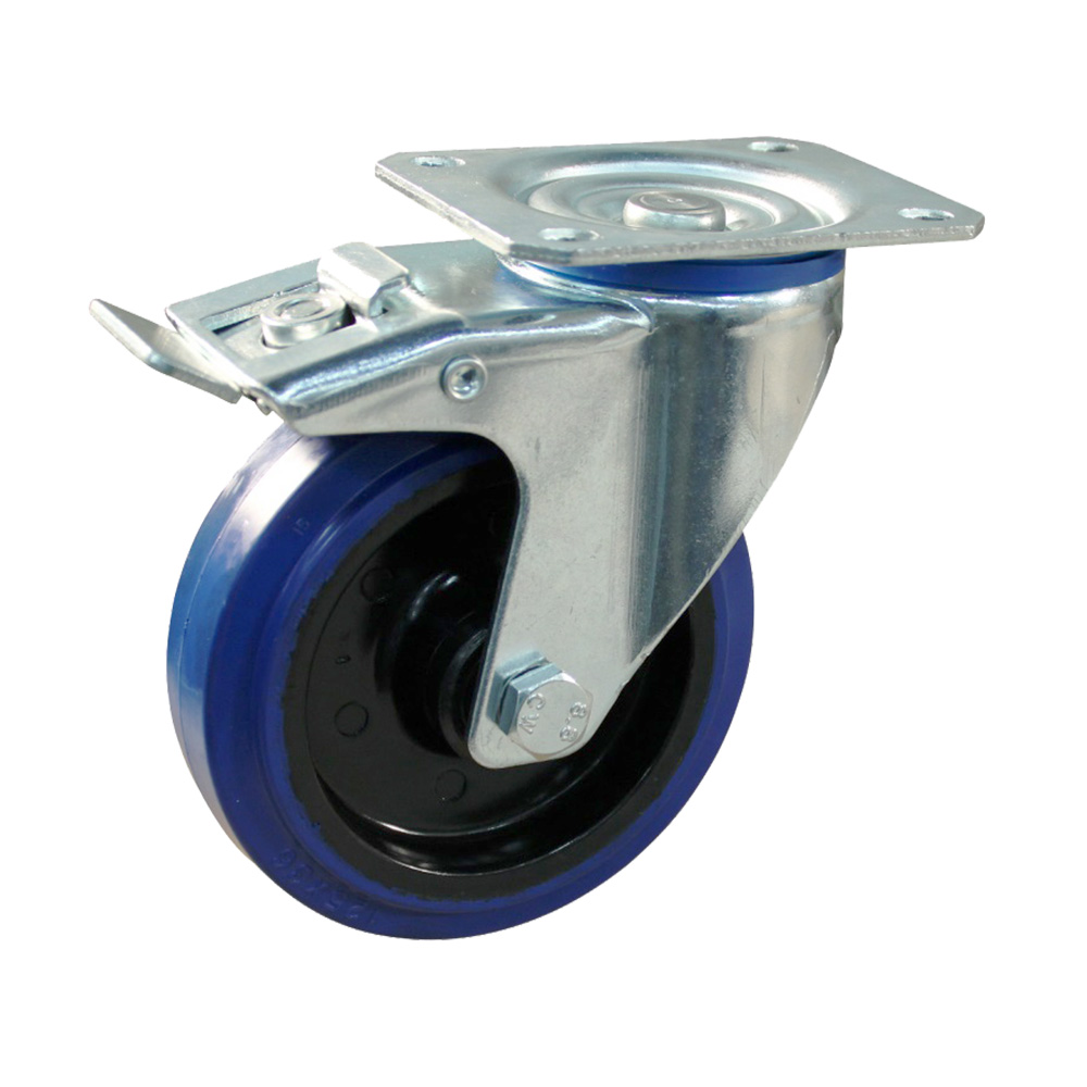 Roulette pivotante Ø125mm PA - bande de roulement bleu Caoutchouc - roulement à rouleaux - fixation de la plaque 105x80mm - Acier