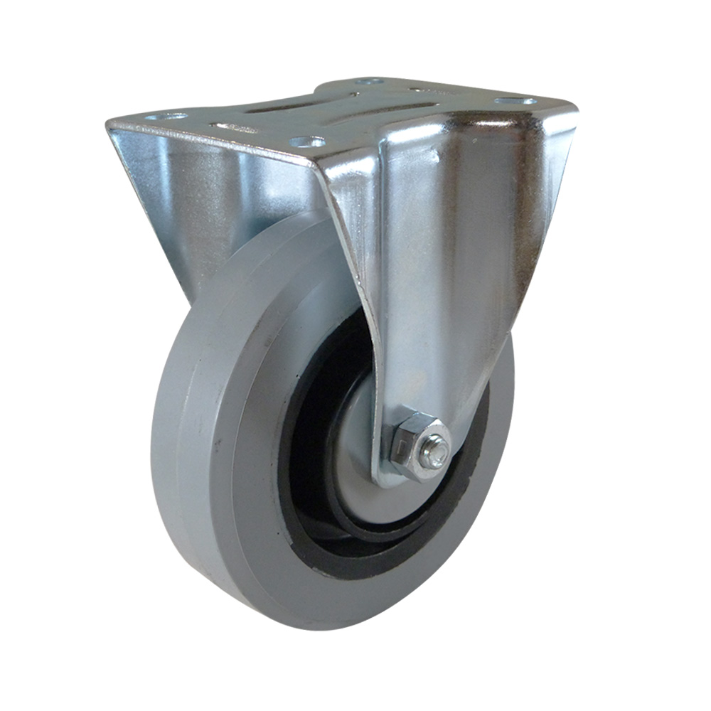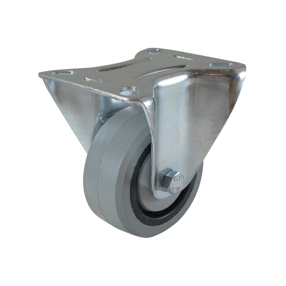 Roulette fixe Ø80mm PA - bande de roulement gris caoutchouc / TPE - roulement à billes - fixation de la plaque 105x80mm - Acier