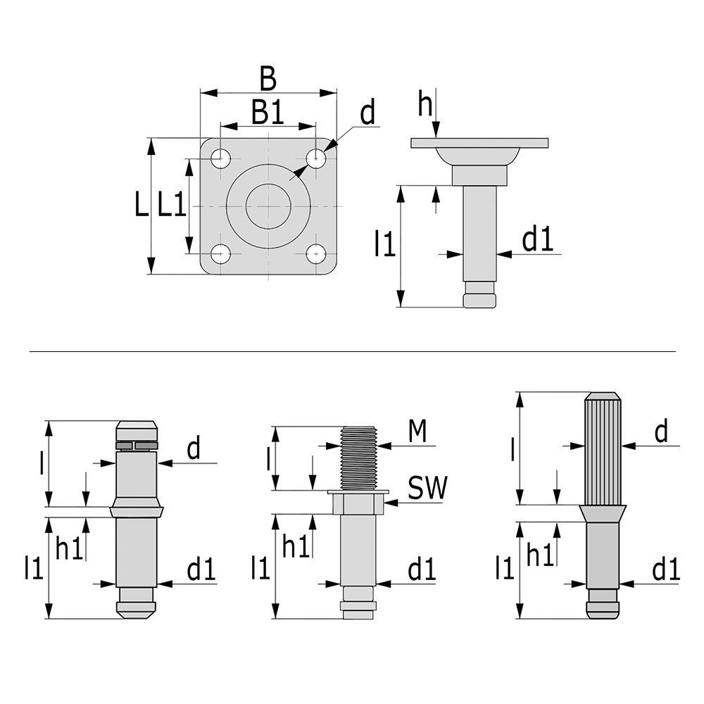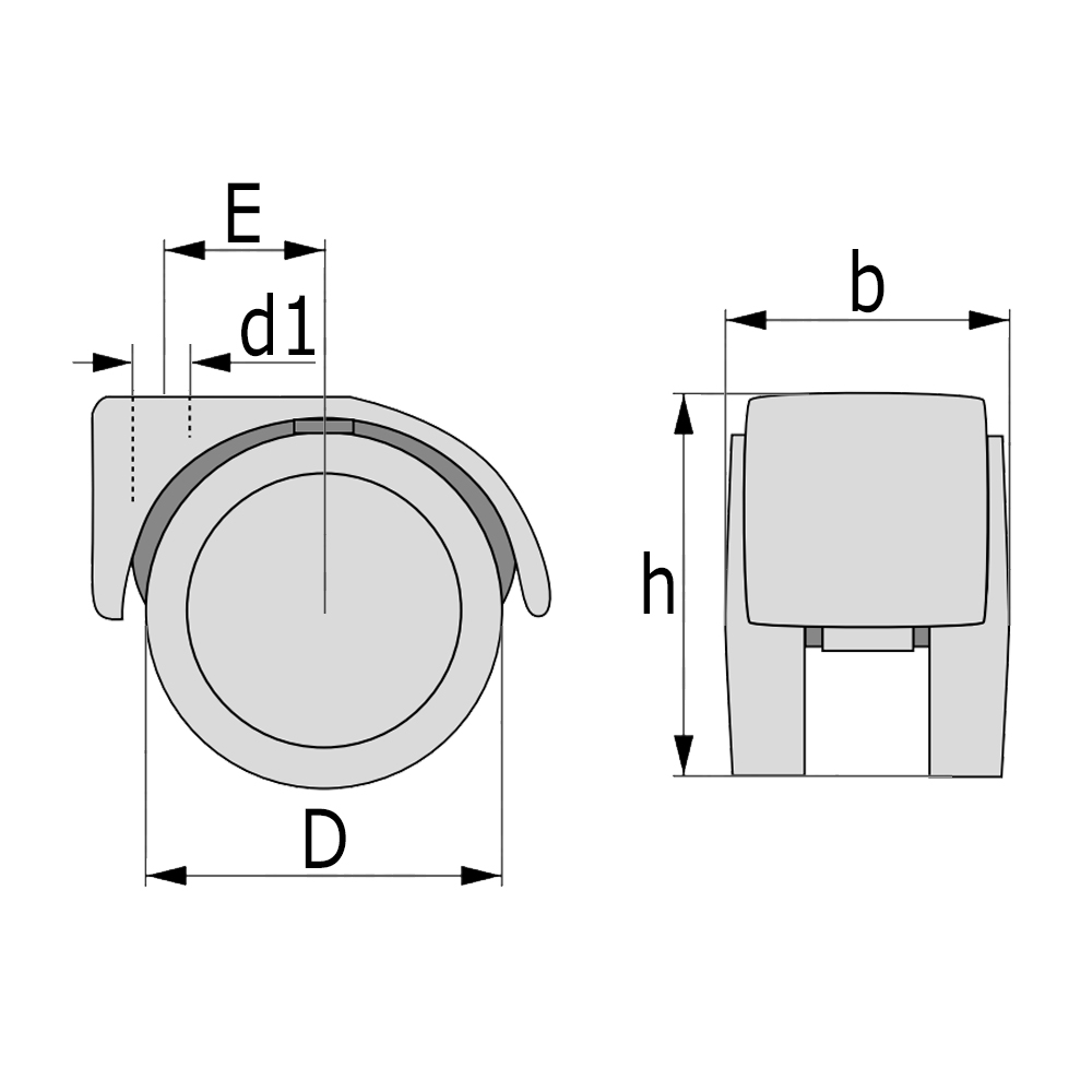 Roue de meuble pivotante double Ø50mm PA - bande de roulement PU / TPU - roulement lisse - tige filetée M8x15mm