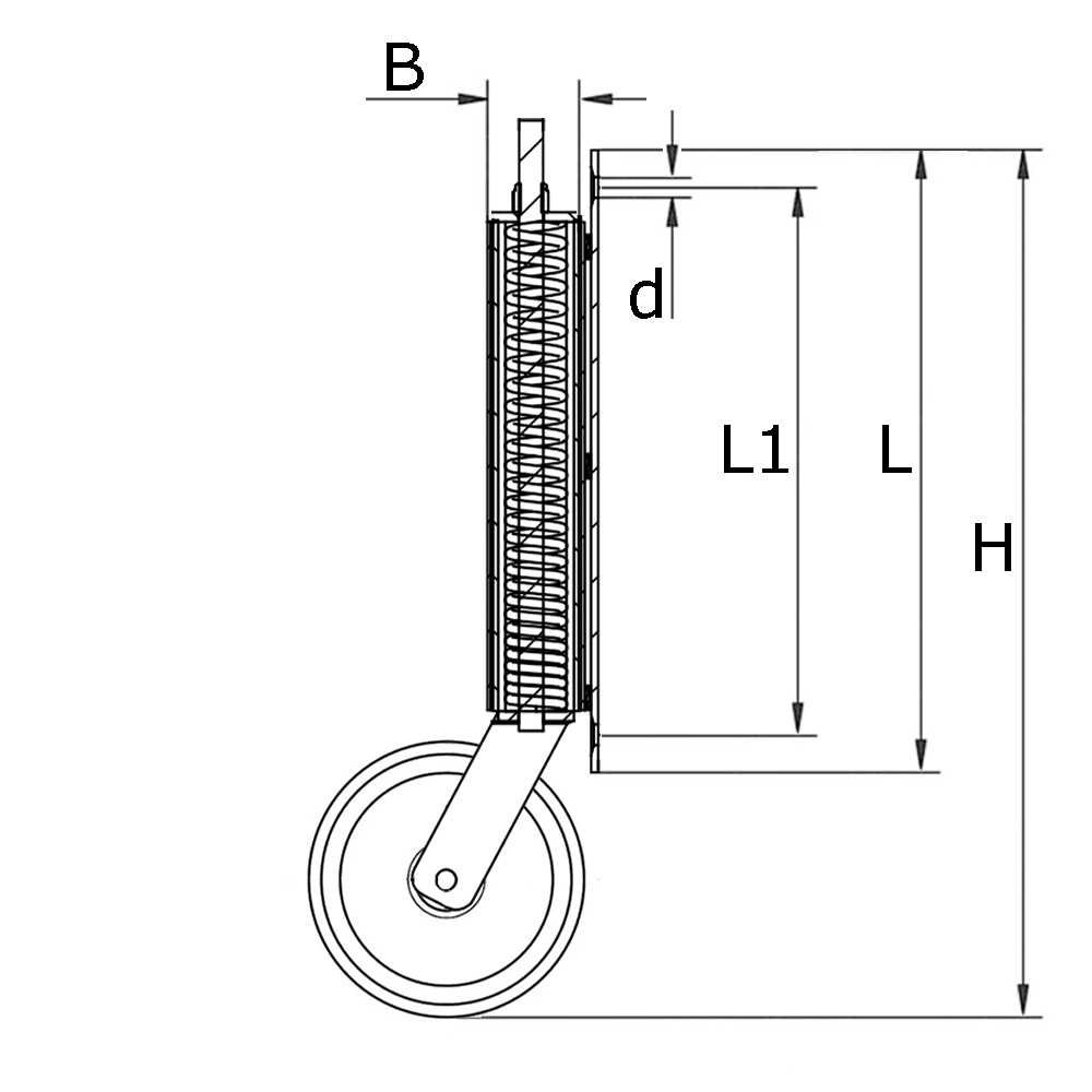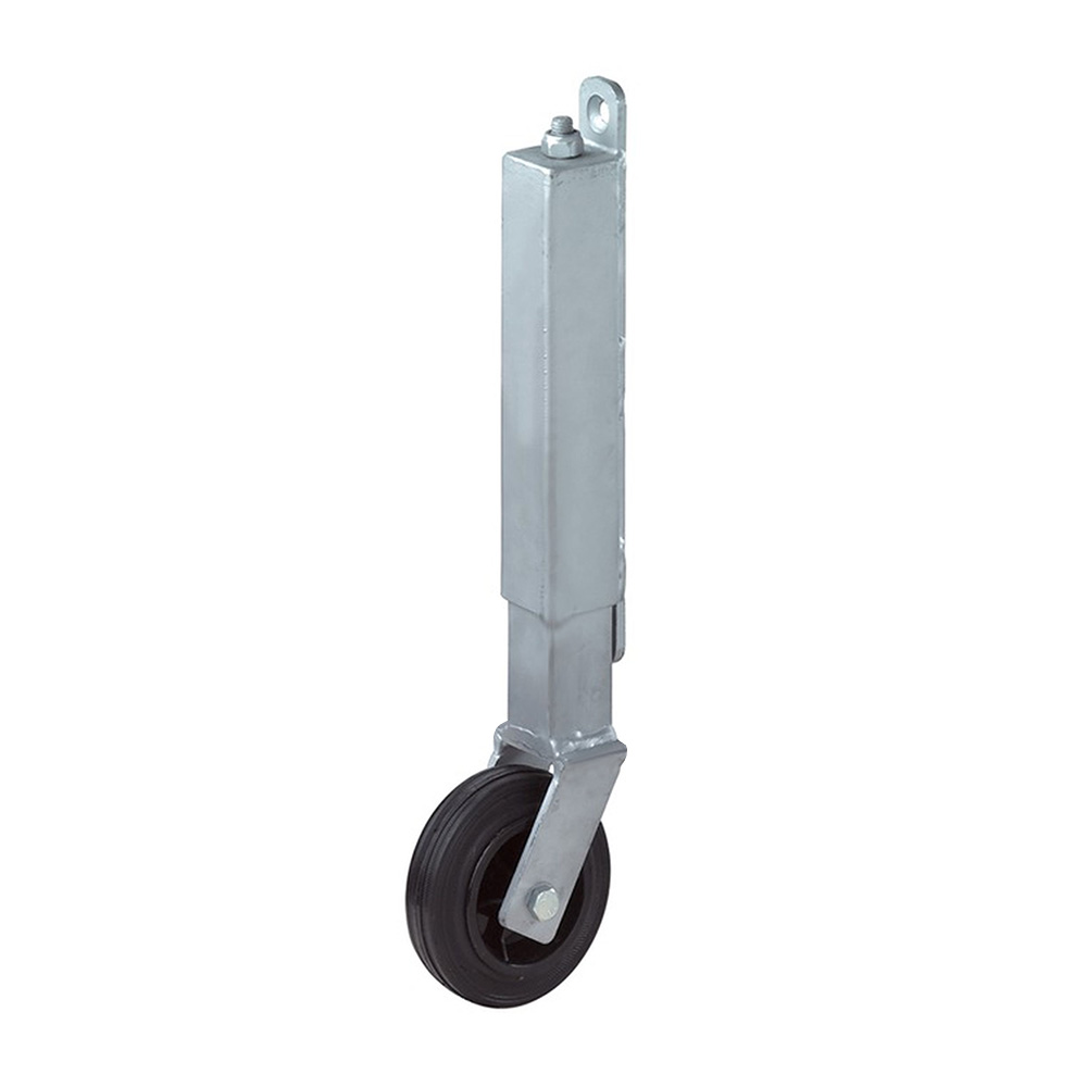 Roue de portail à ressort Ø100mm PP - bande de roulement caoutchouc / TPE - roulement lisse - fixation de la plaque 255x30mm - Acier