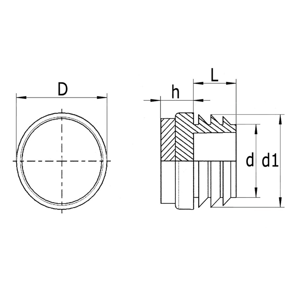 Embout à ailettes avec feutre rond PE Ø30mm - 1.5-2.0mm - Noir