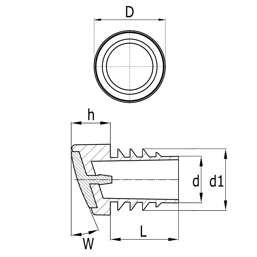 Dimension du tube=Dimension du tube extérieur , D=Ø-pied, D=Ø-tige, D1=Ø-ailettes, h=Hauteur de pied, L=Longueur de tige, Exécution=Épaisseur de paroi tube, W=Angle de positionnement en °