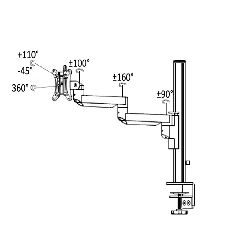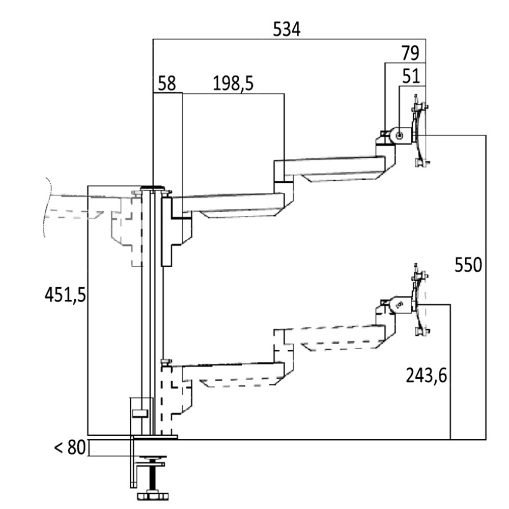 Bras support écran Galaxy Aluminium - SET - poteau 450mm avec bras statiques - bord de la feuille - pince passe-câble - 2 écrans - Argent