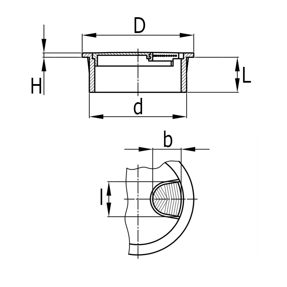 a=Largeur trou de passage, Perçage =Ø-trou de montage, B=Largeur trou de passage, D=Ø-tête, D=Ø-arbre, H=Hauteur de tête, L=Longueur d'arbre