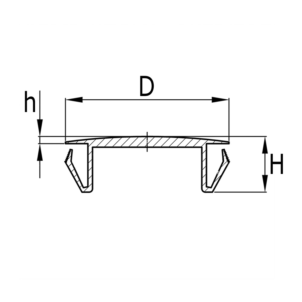 D=Ø-tête, H=Hauteur, h=Épaisseur de tête, Épaisseur de plaque=Plage épaisseur de plaque (min-max), Perçage =Ø-trou de montage – plage (min-max)
