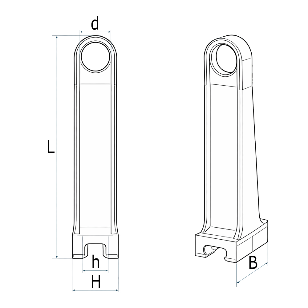 B=Largeur, d=Ø-œillet, H=Hauteur, L=Longeur