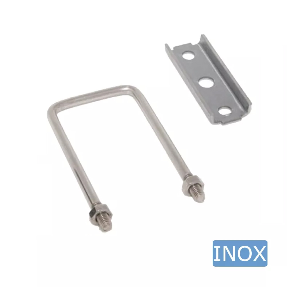 - Cet étrier U en inox (modèle 4) est disponible pour des montants de clôture avec une dimension de profilé de 60x40, 80x40, 100x40 ou 120x40mm