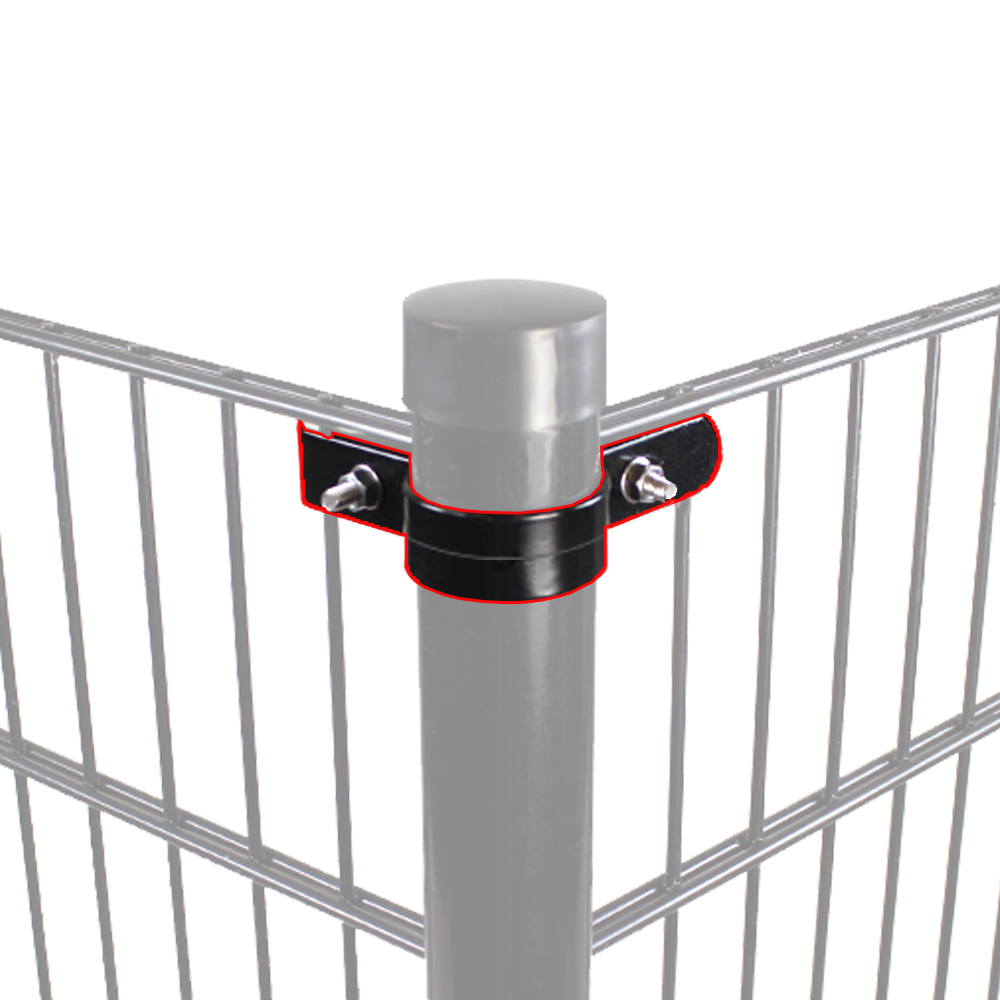 - Ces supports d'angle à longue lèvre en plastique avec angle variable sont conçus pour la fixation de panneaux de grillage 8/6/8 ou 6/5/6 sur un poteau de clôture Ø60mm dans n'importe quelle configuration angulaire souhaitée.