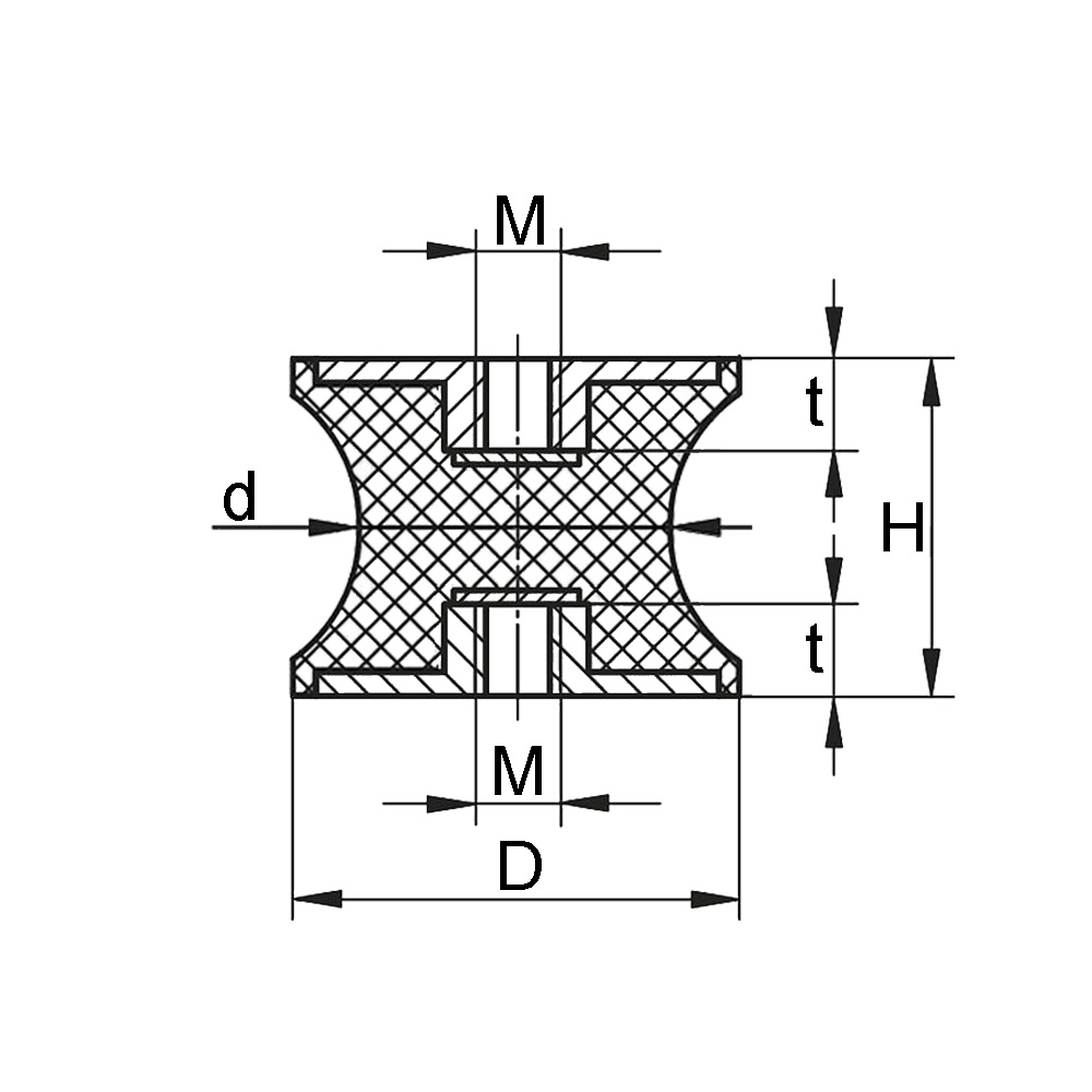 Matériau: Parties en caoutchouc - NR (caoutchouc naturel) Shore A 55° ±5% (mi-dur), Pièces métalliques - Acier galvanisé (St37) ou acier inoxydable AISI 304 (A2)