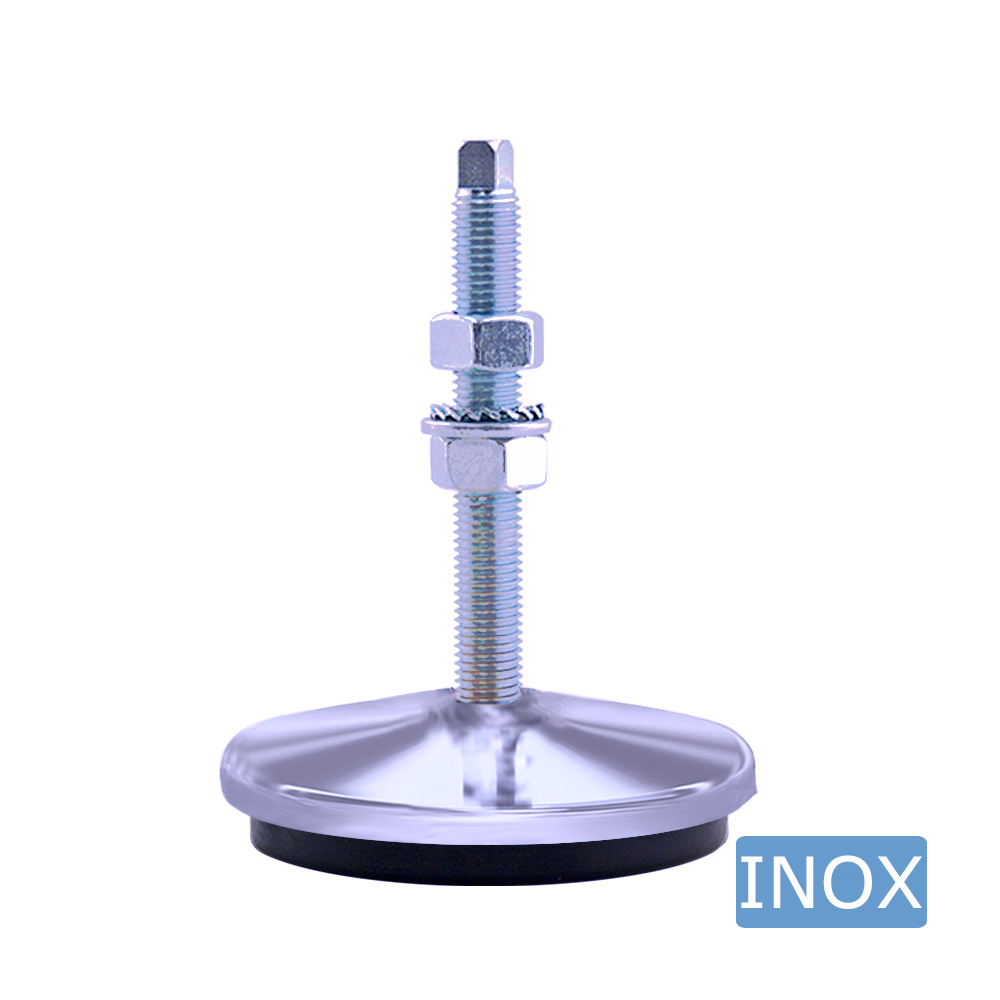 - RVS trillingsdempende machine stelvoeten zijn standaard leverbaar in voetdiameters vanaf Ø84mm tot en met Ø180mm met draadspindels in respectievelijk M12, M14, M16 of M20 schroefdraad (metrisch normaal)