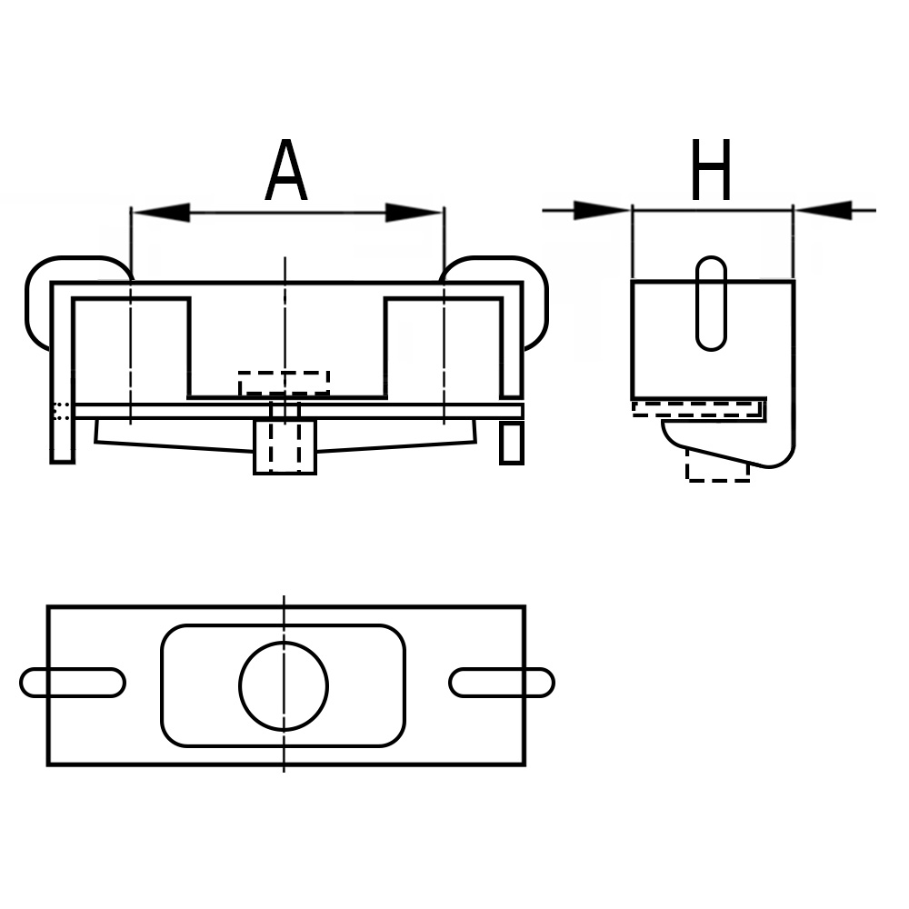 A=Distance entraxe, Dimension du tube=Convient pour dimension du tube, H=Largeur