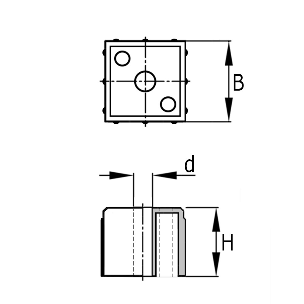 Bloc de fixation PA-GF 20x20mm - 1.5mm - 2-parties - Gris
