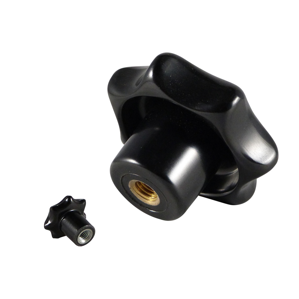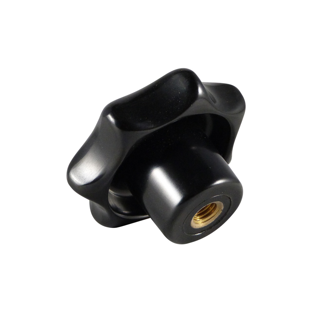 Bouton étoile bakélite PF Ø20mm - embout fileté rond avec écrou metalique M5 - Noir