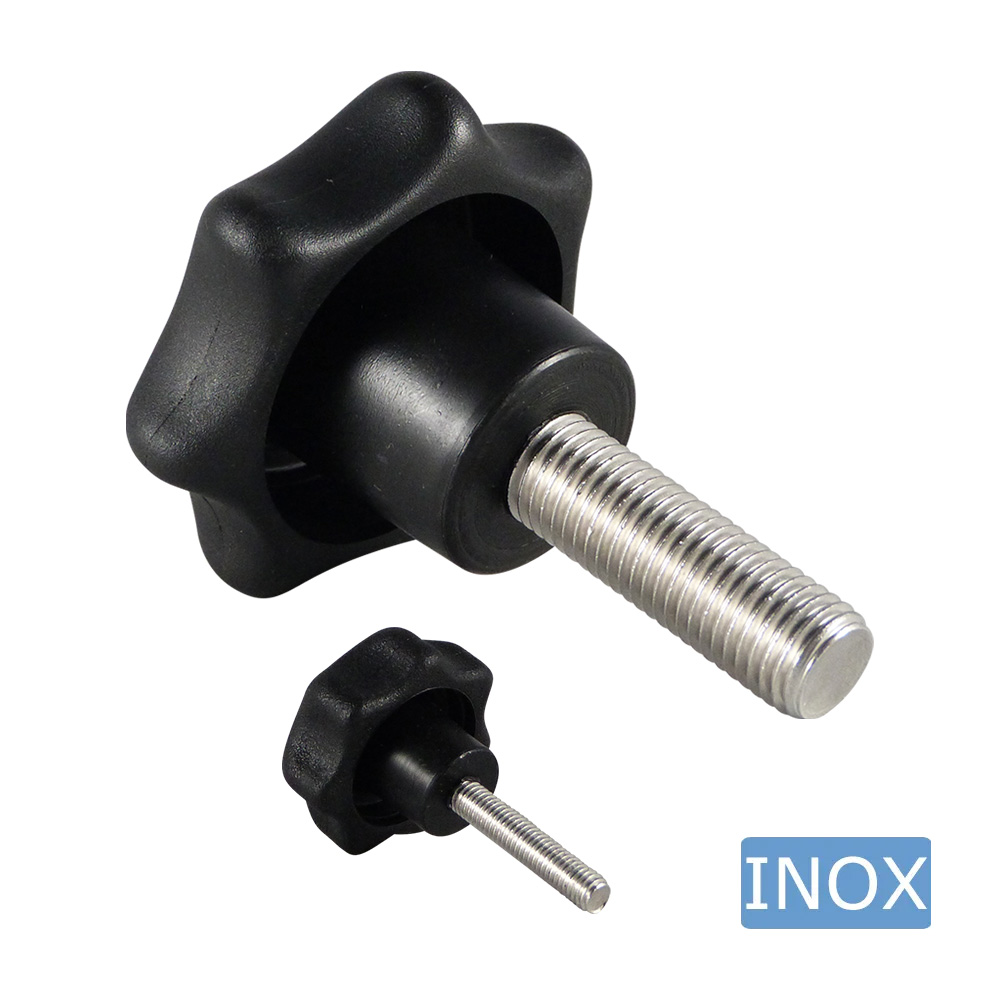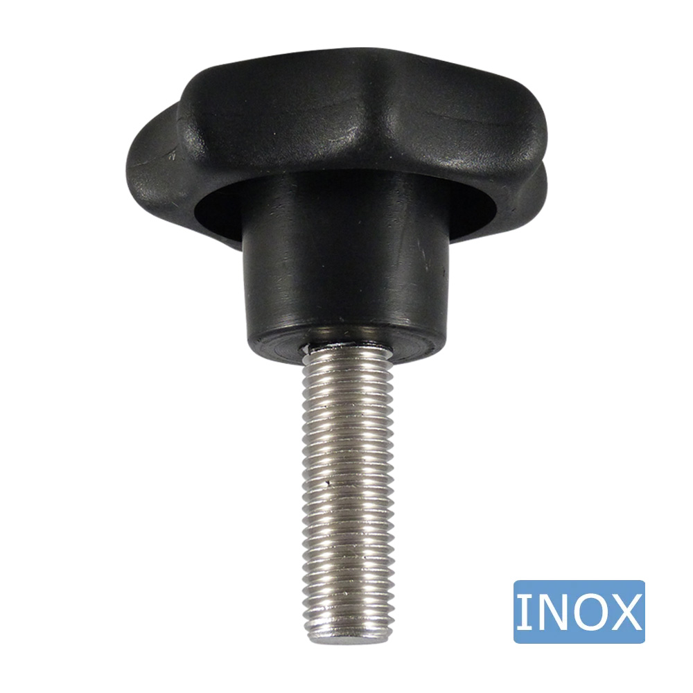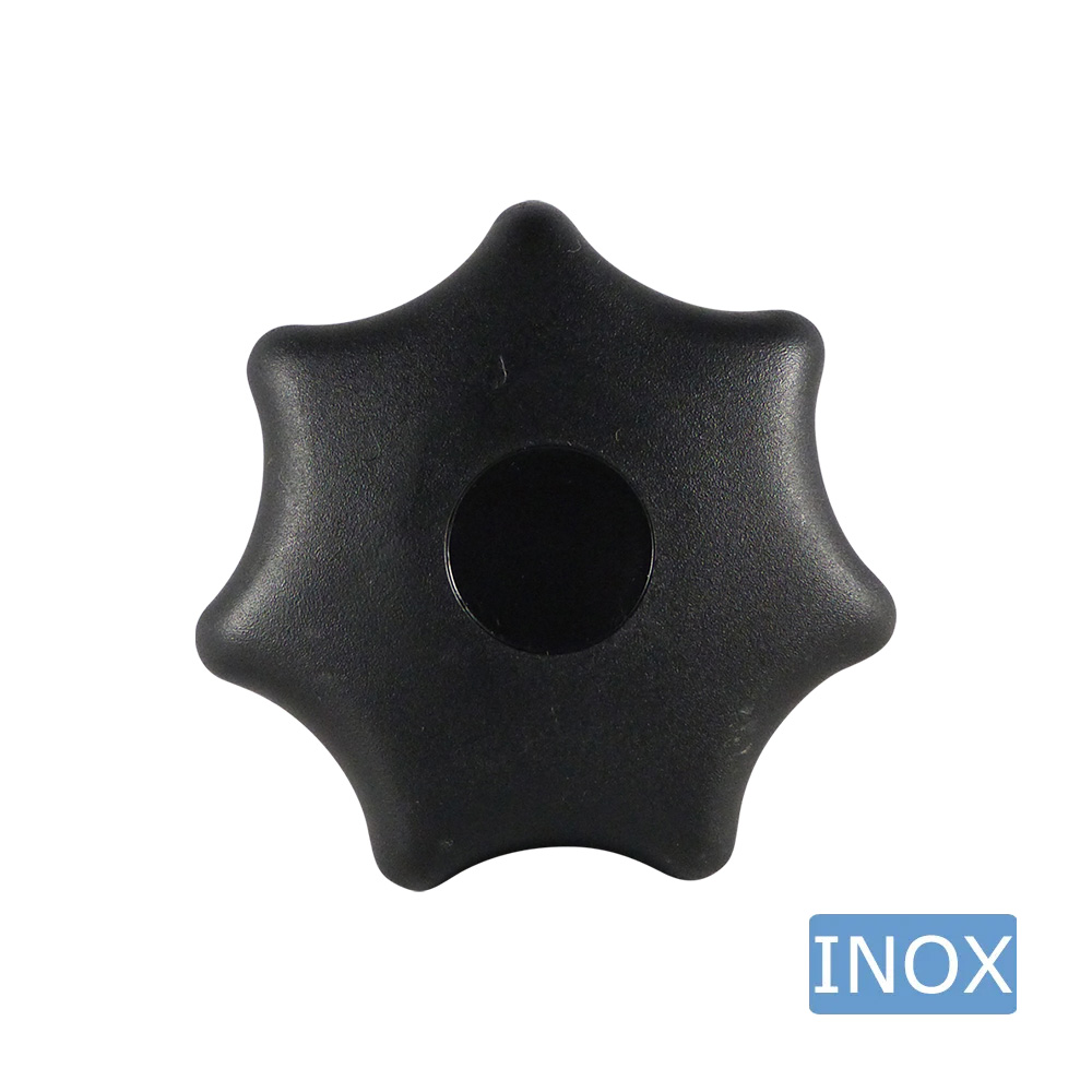 Bouton étoile PP Ø40mm - tige filetée Inox M6x10mm - Noir