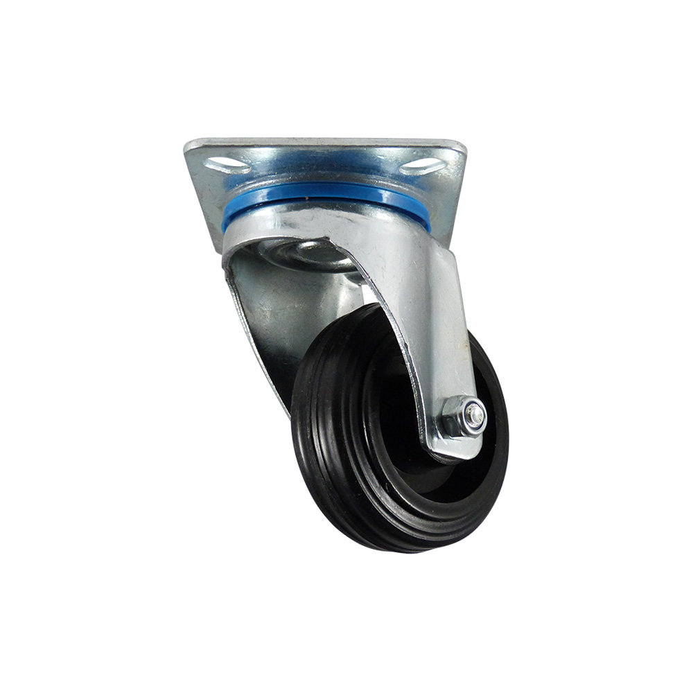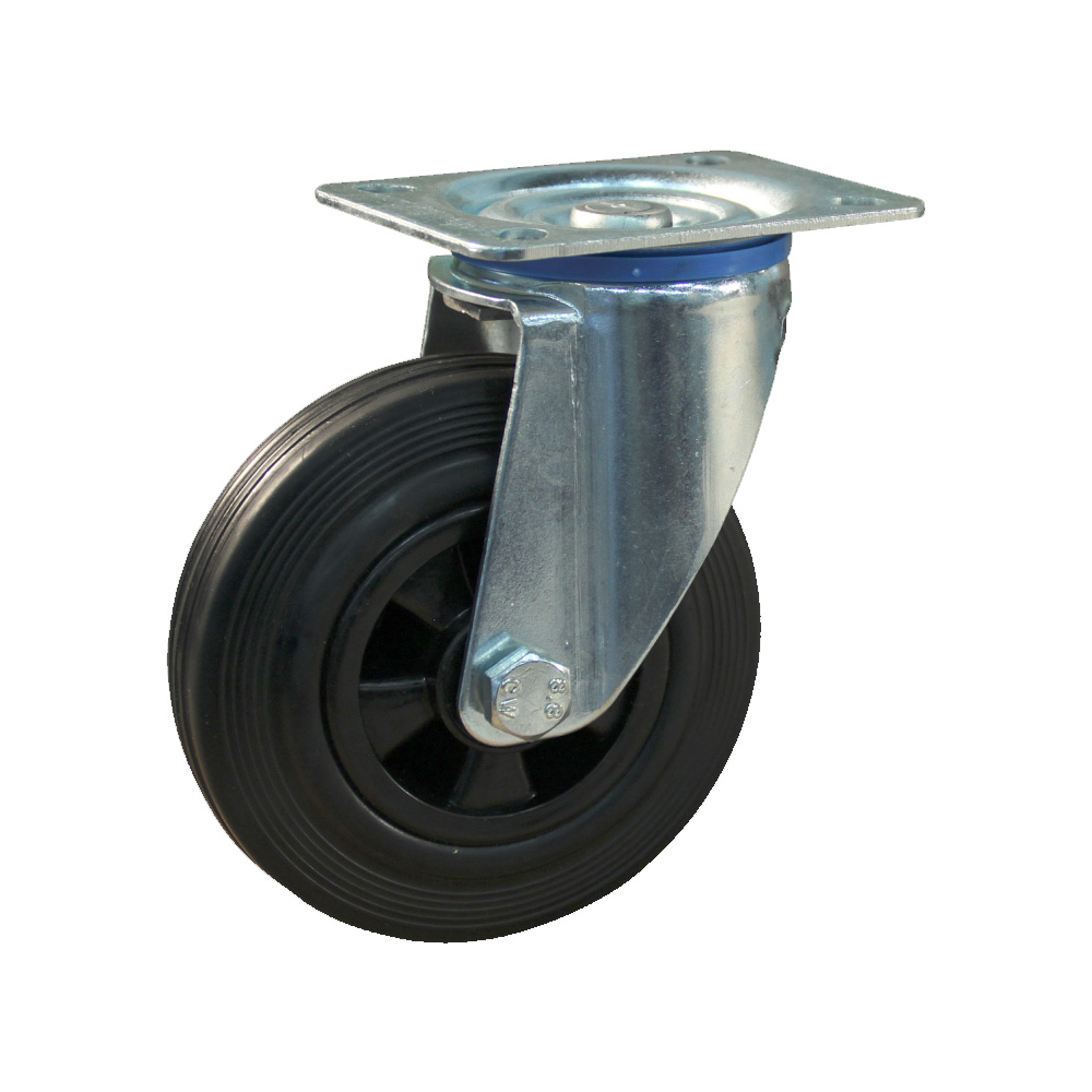 Roulette pivotante Ø80mm PP - bande de roulement bleu caoutchouc / TPE - roulement lisse - fixation de la plaque 105x80mm - Acier