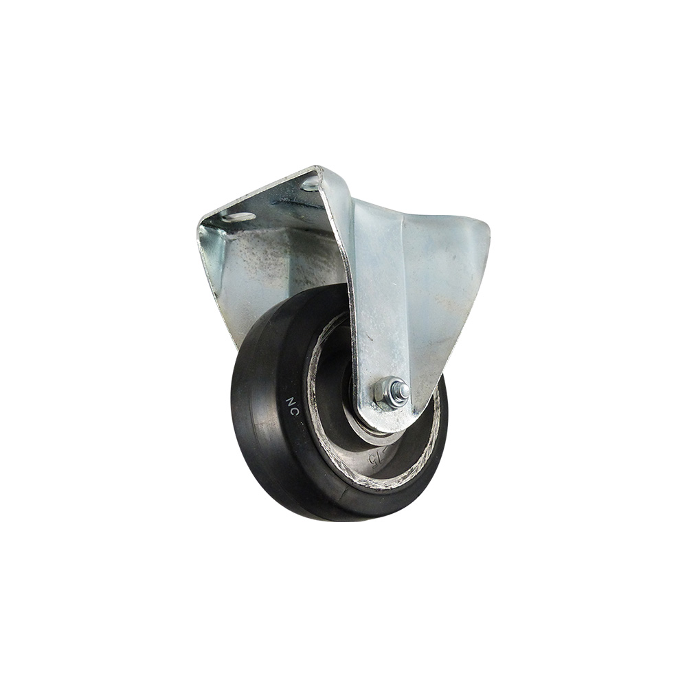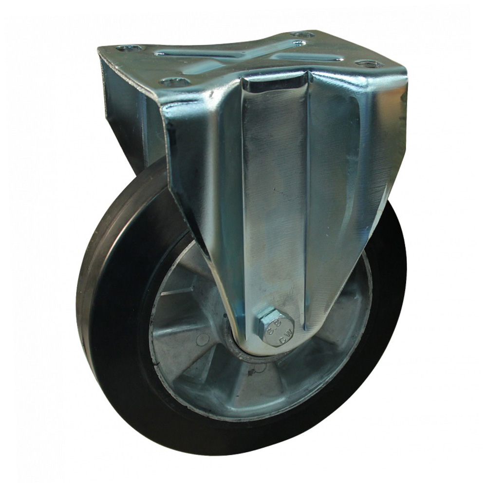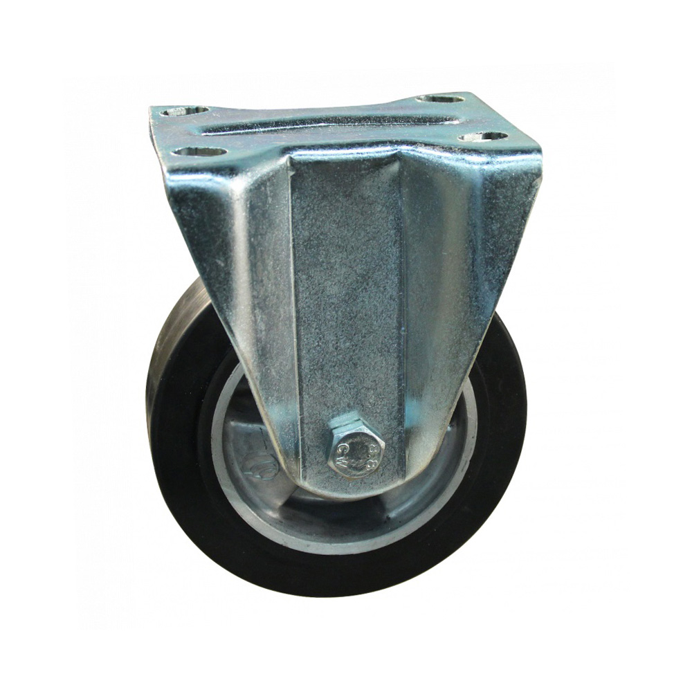 Roulette fixe Ø125mm Aluminium - bande de roulement bleu caoutchouc / TPE - roulement à billes - forte charge - fixation de la plaque 105x85mm - Acier