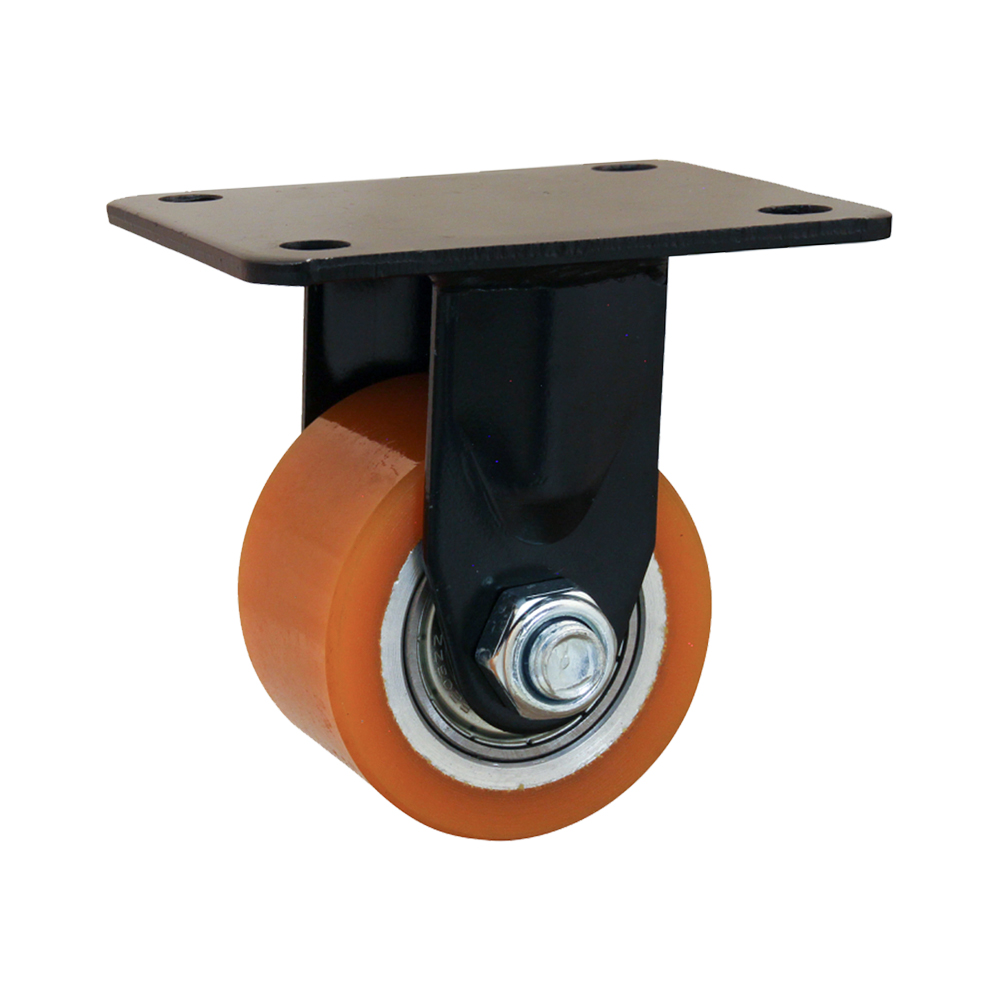 Roulette appareil fixe mini Ø65mm Acier - bande de roulement PU / TPU - forte charge - roulement à billes - fixation de la plaque 105x85mm - Acier