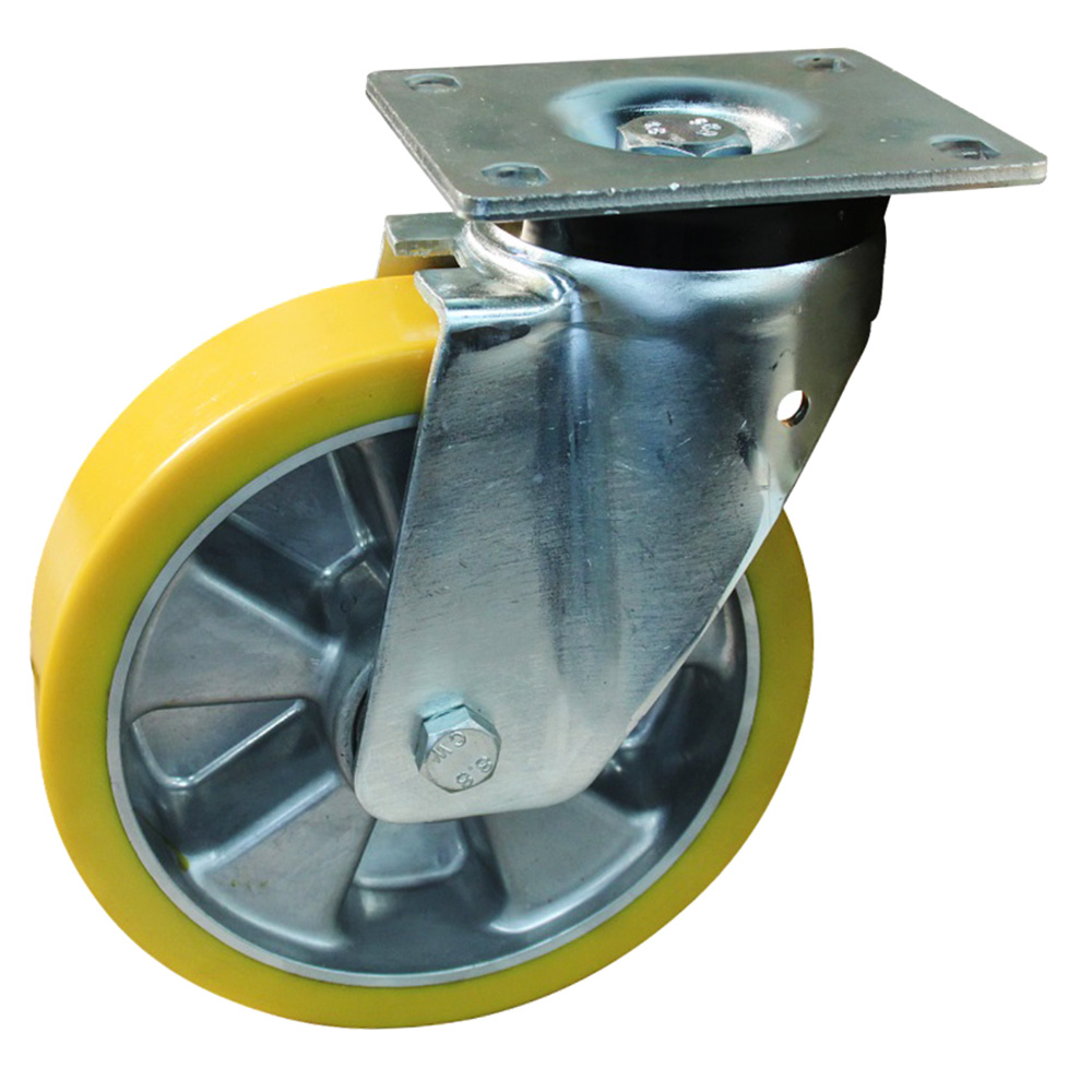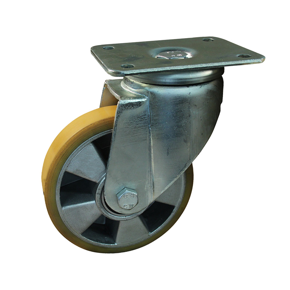 Roulette pivotante Ø125mm Aluminium - bande de roulement PU / TPU - forte charge - roulement à billes - fixation de la plaque 140x110mm - Acier