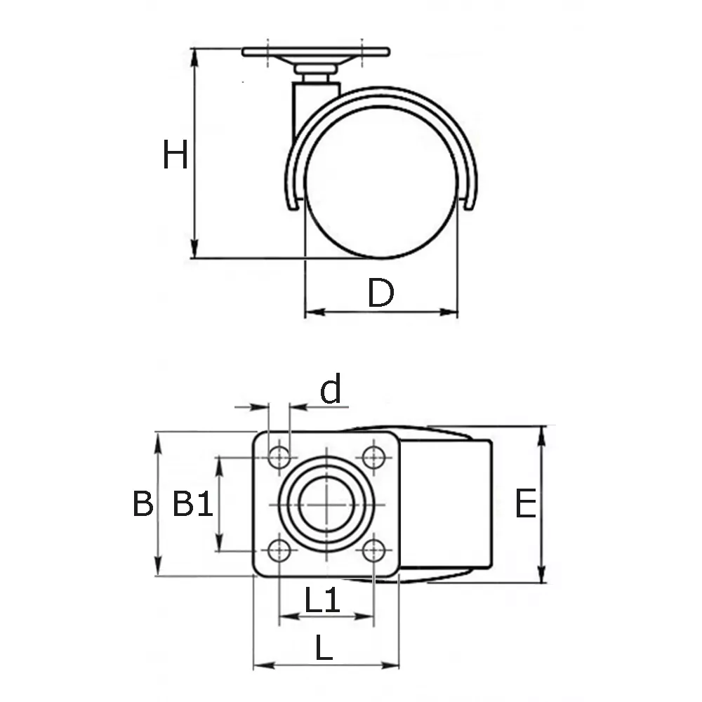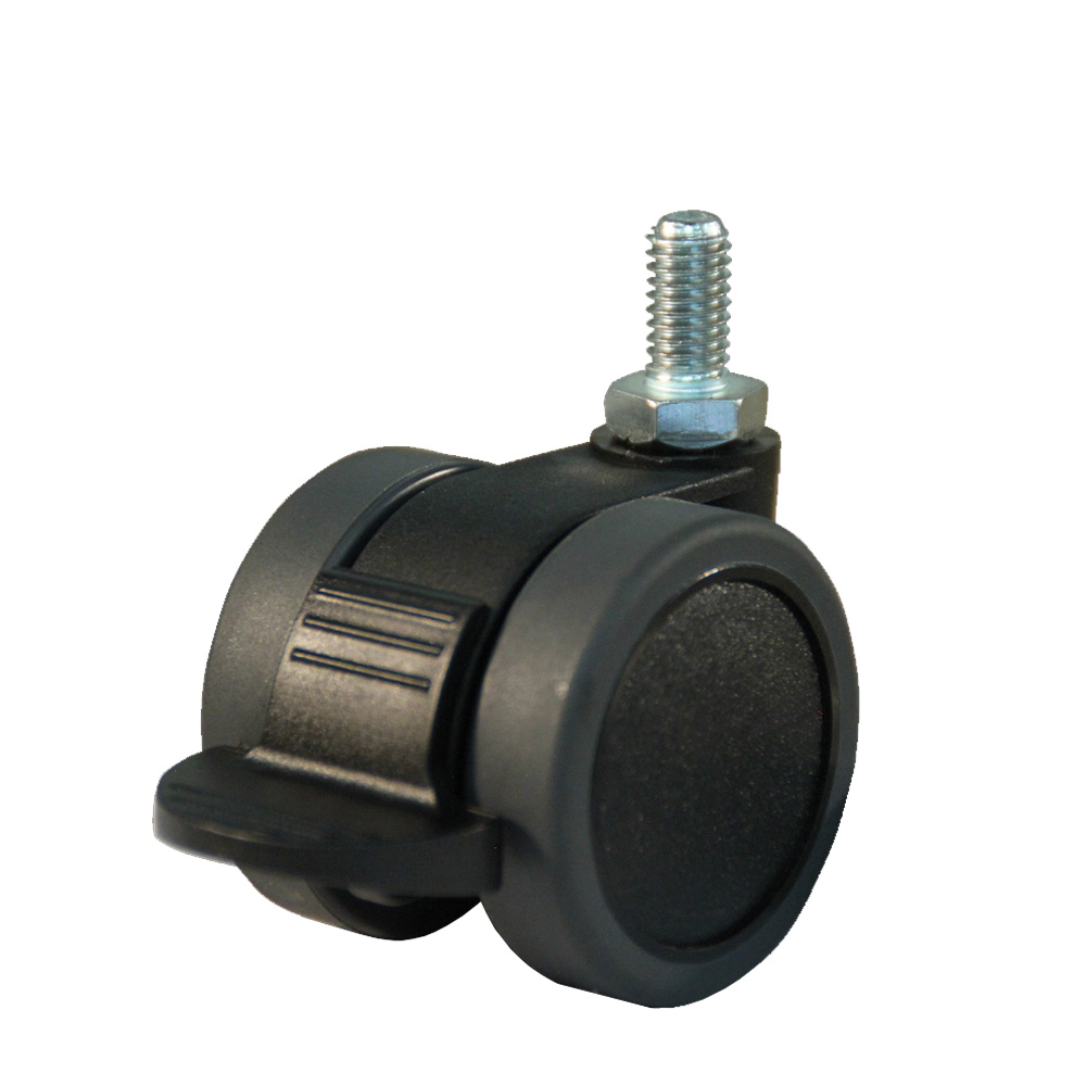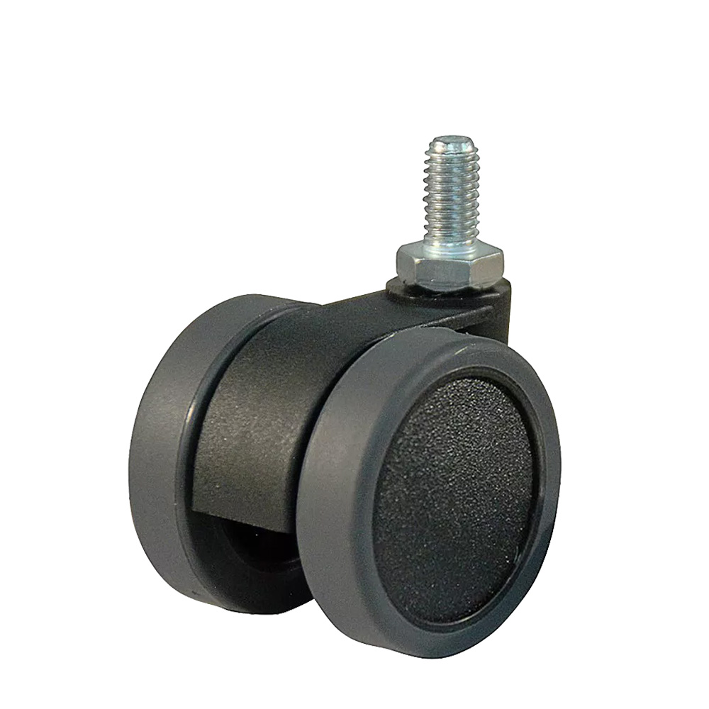 Roue de meuble pivotante double Ø42mm PA - bande de roulement PU / TPU - roulement lisse - fixation de la plaque 37x37mm