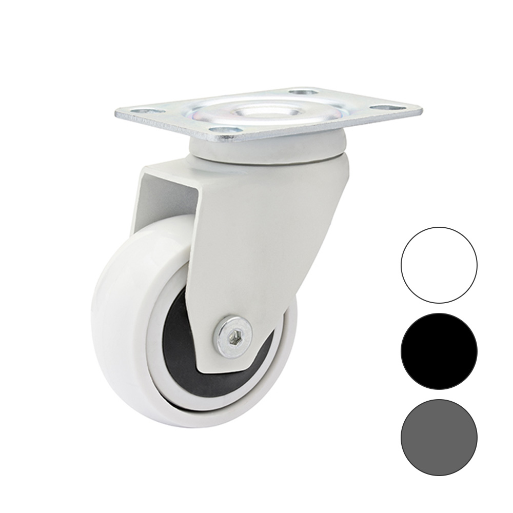 Roue de meuble pivotante Ø25mm TPE - bande de roulement caoutchouc / TPE - roulement lisse - fixation de la plaque 38x30mm - Noir