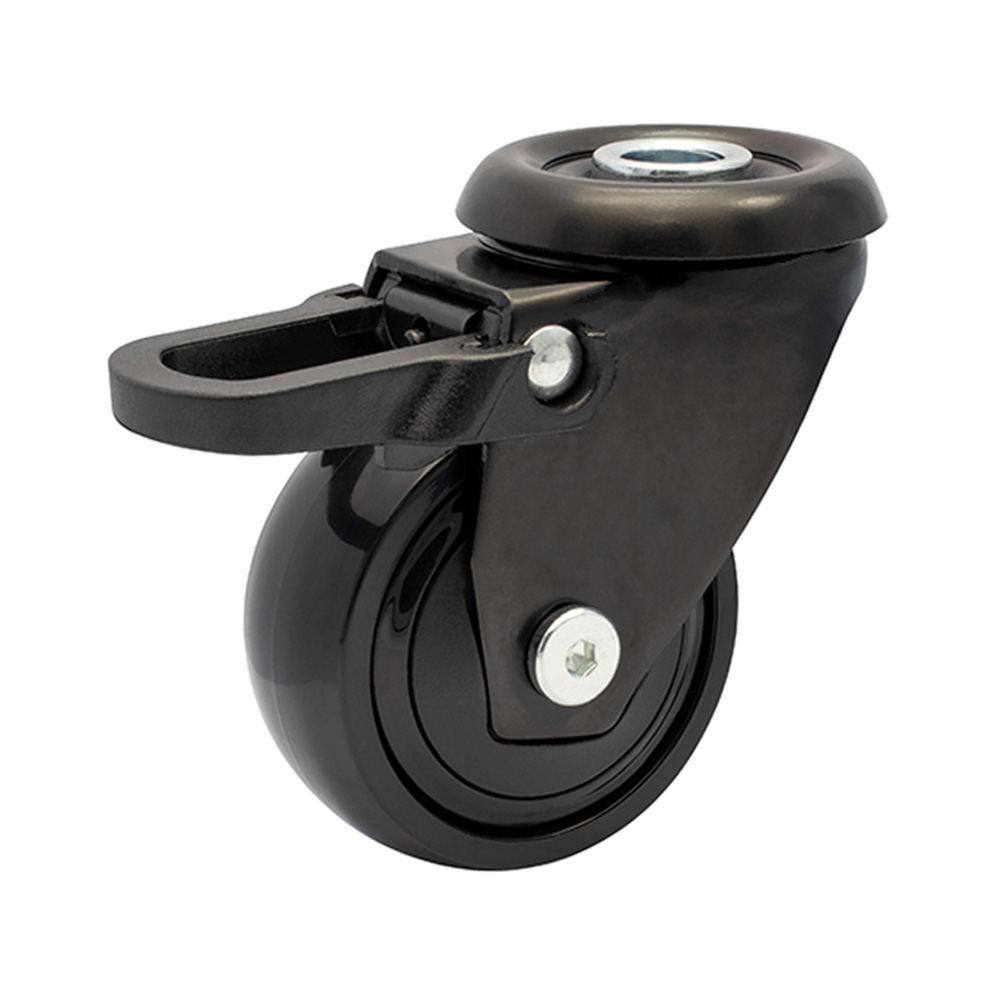Roue de meuble pivotante Ø50mm TPE - bande de roulement caoutchouc / TPE - roulement à billes - trou de boulon Ø10mm - Noir