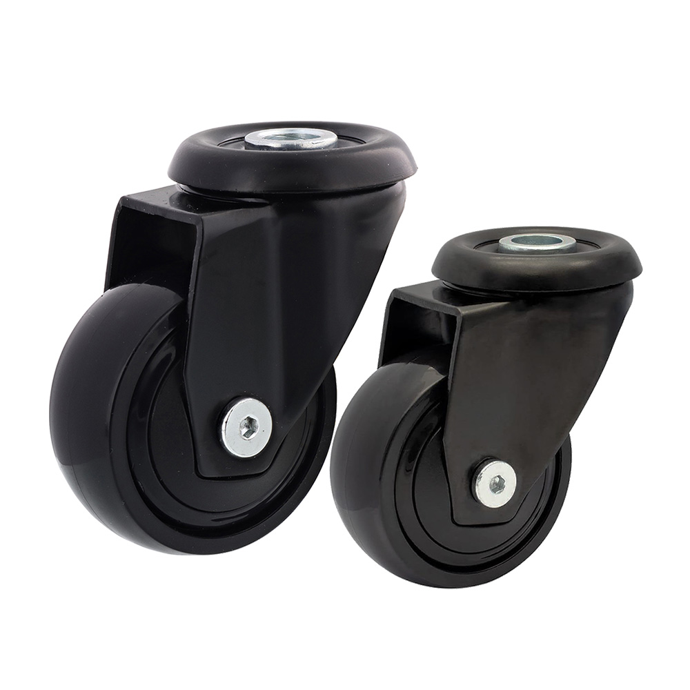 Roue de meuble pivotante Ø75mm TPE - bande de roulement caoutchouc / TPE - roulement à billes - trou de boulon 10mm - Noir