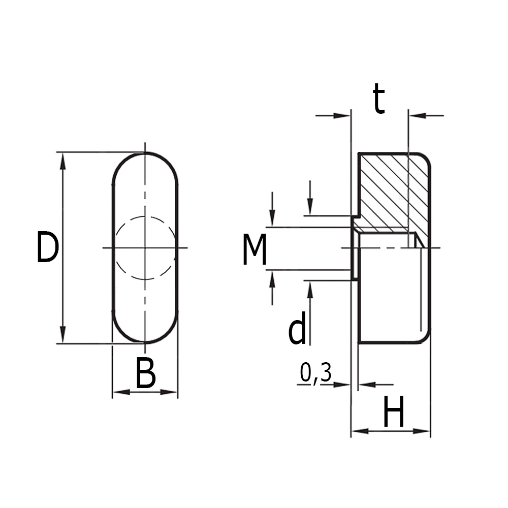 D=Longueur d'aile, D=Ø-collet, H=Hauteur, M=Filetage