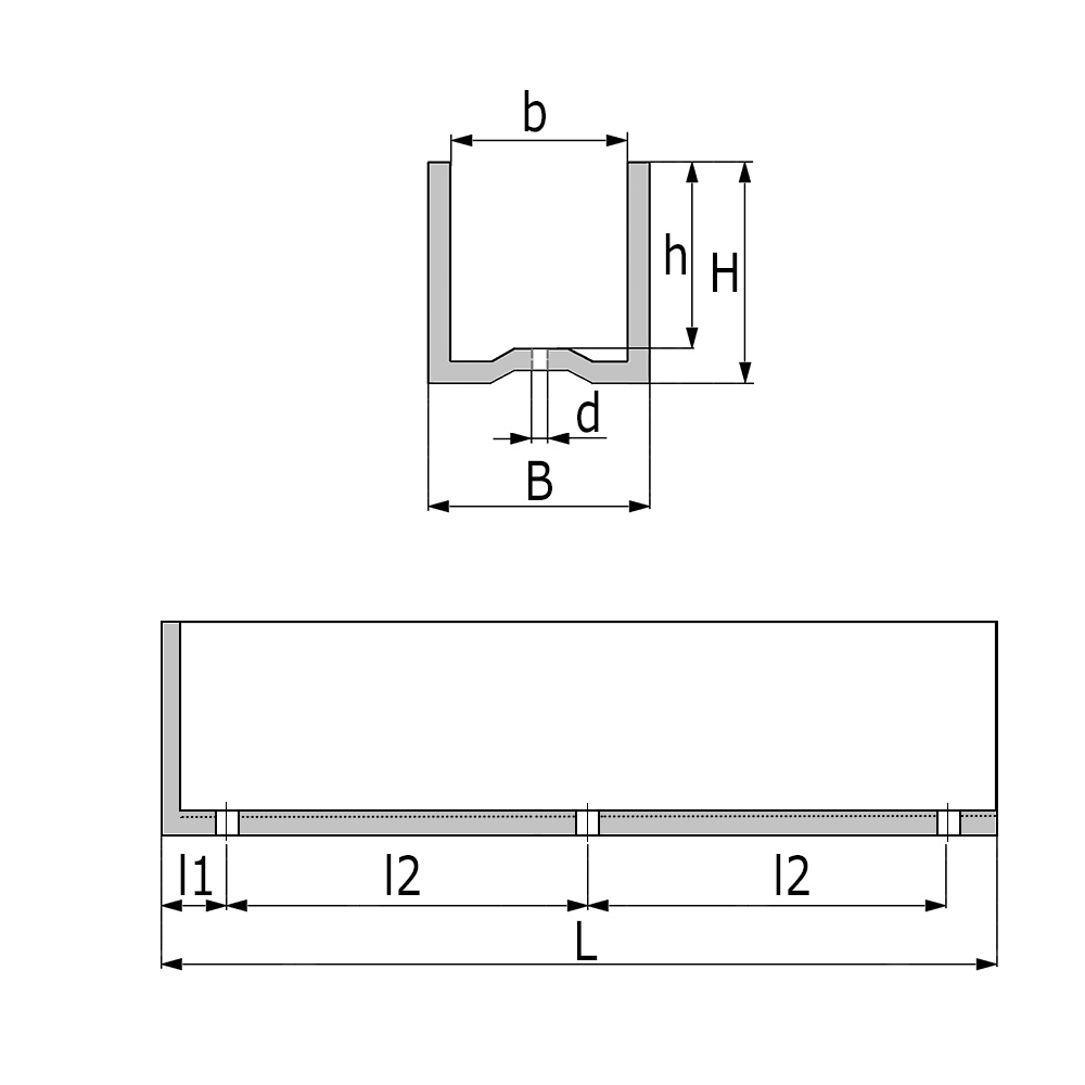 B=Largeur extérieure, b=Largeur intérieure, d=Ø perçage, H=Hauteur extérieure, h=Hauteur intérieure, L=Longueur