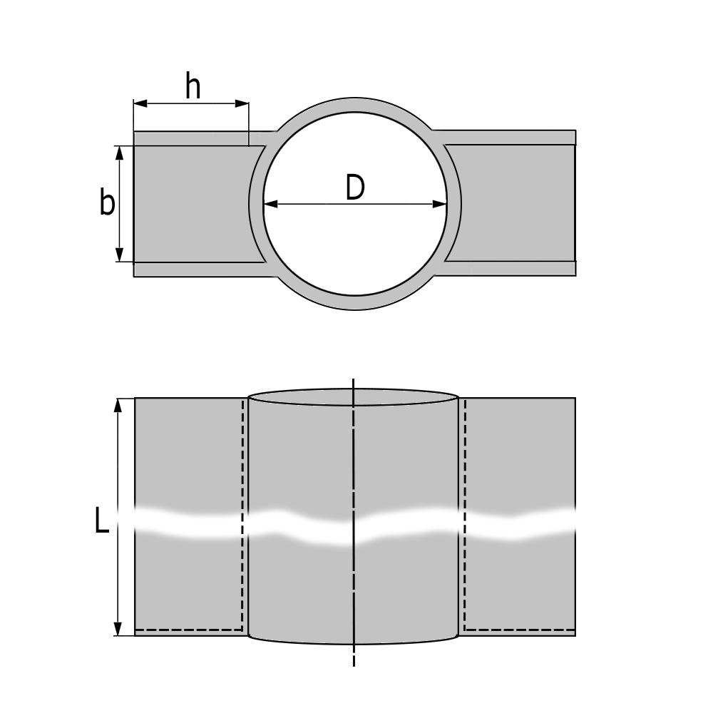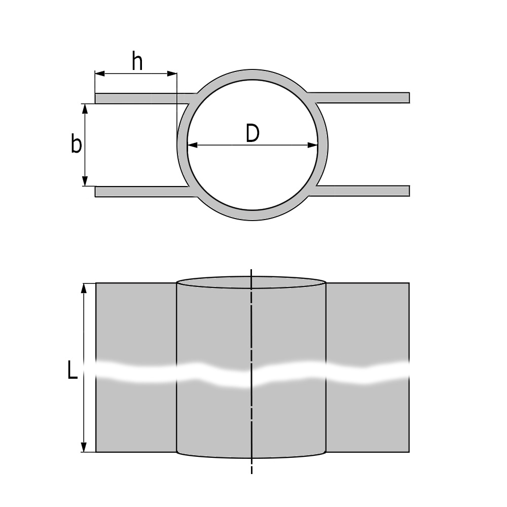 D=Dim. tuyau=Ø intérieur, b=Largeur intérieure, h=Hauteur intérieure, L=Longueur, Var.=Extrémité ouverte ou fermée