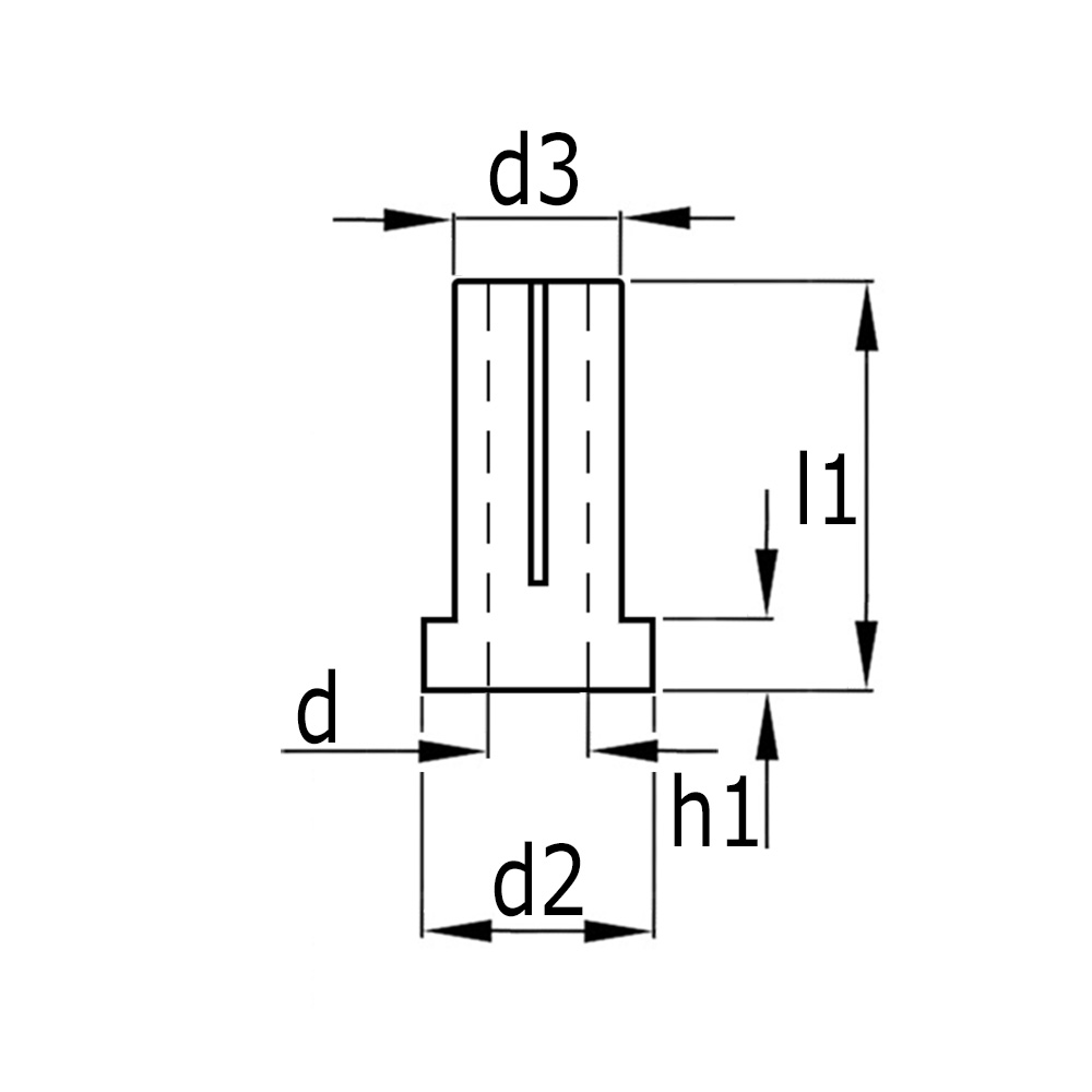 D=Ø-perçage, D2=Ø-collet, D3=Ø-arbre, h1=Épaisseur du collet, l1=Longeur