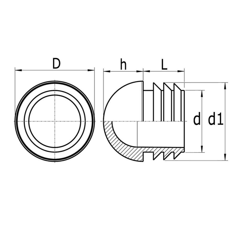 Embout à ailettes rond tête plate PE Ø49.80 - 1.00-2.00mm - Noir
