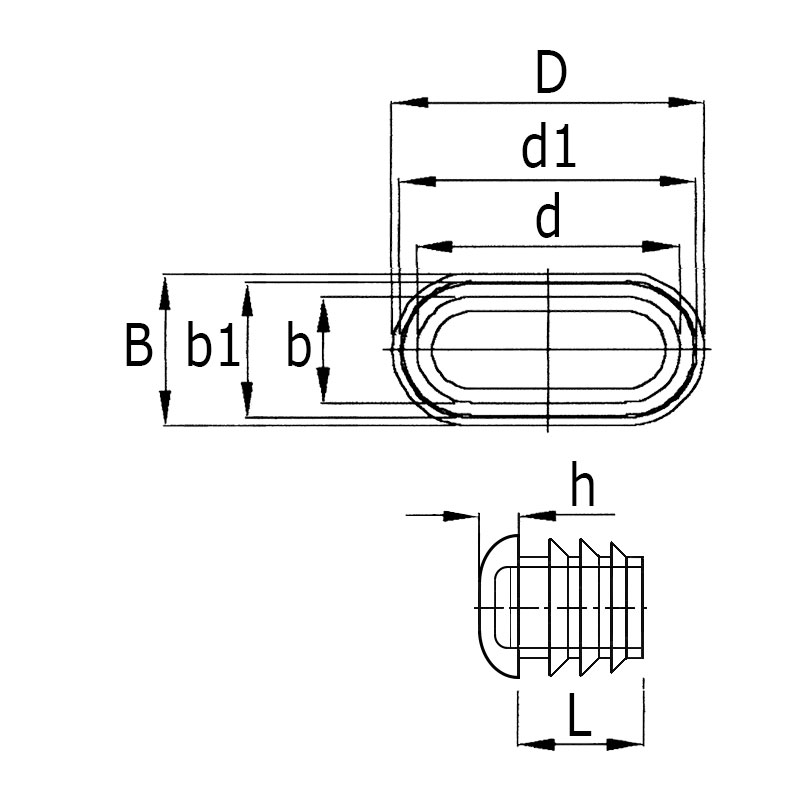 Dimension du tube=Dimension de tube extérieur , BxD=Dimensions de tête, bxd=Dimensions de la tige, b1xd1=Dimensions des ailettes, h=Hauteur de tête, L=Longueur de tige, Exécution=Épaisseur de paroi tube