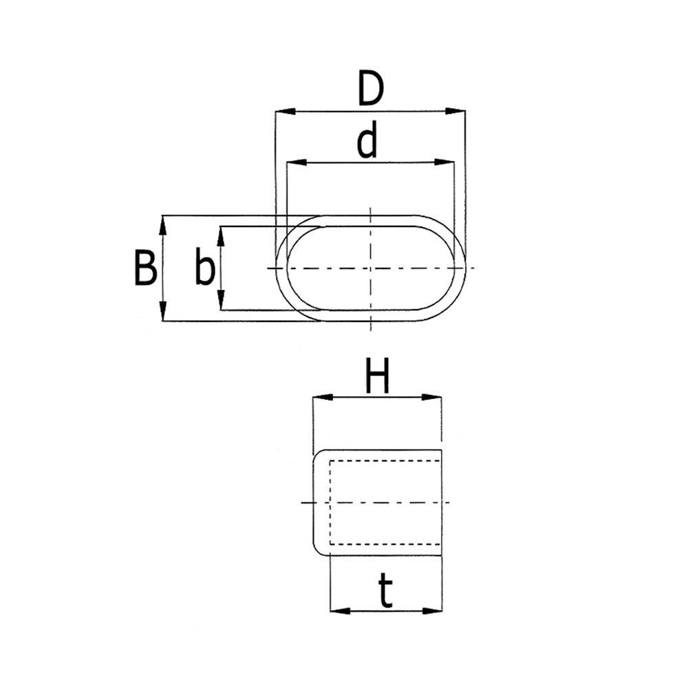Dimension du tube=Ø-tube extérieur, BxD=Dimensions d'embout extérieur, bxd=Dimensions intérieur, H=Hauteur, T=Profondeur