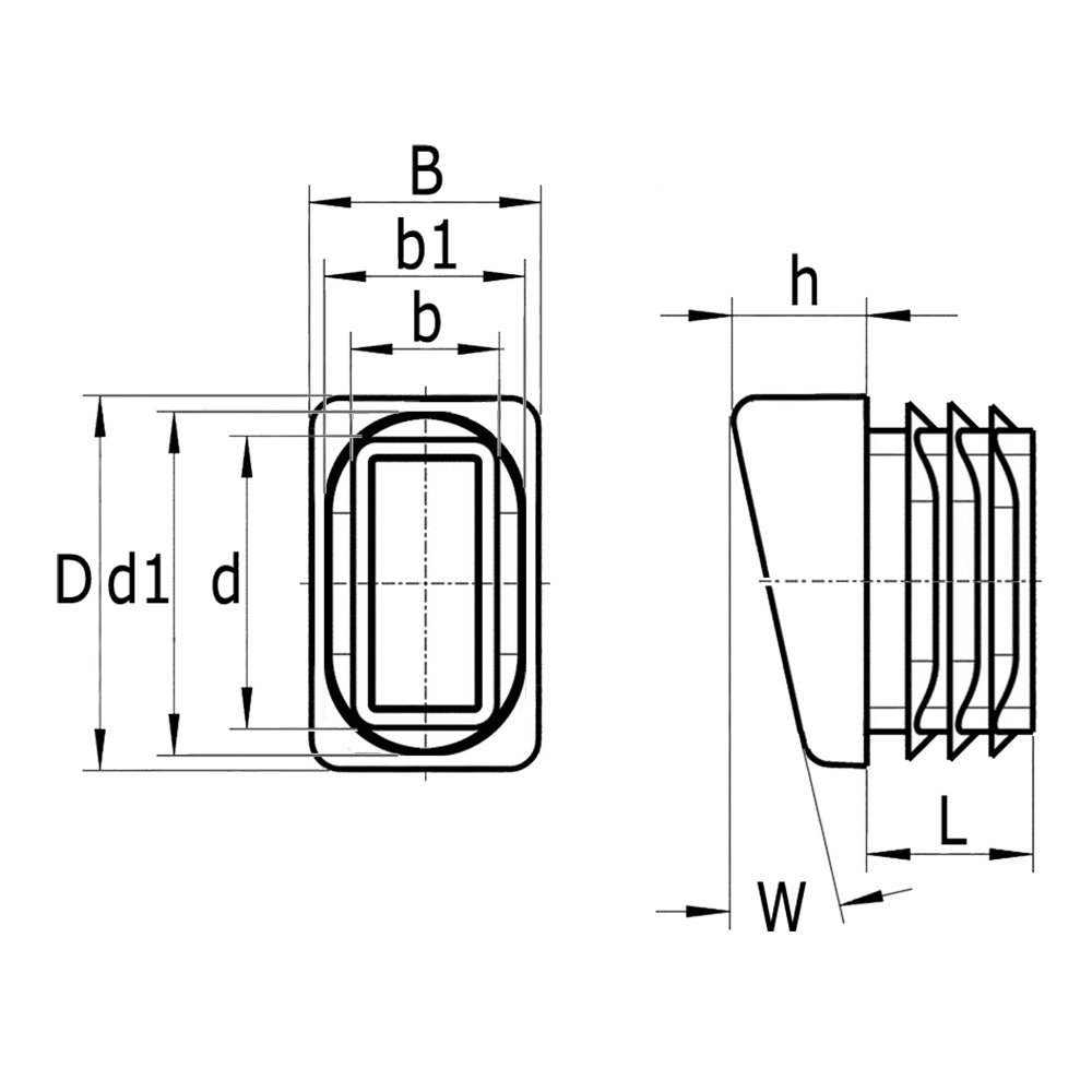 Embout à ailettes rectangulaire PE 20x15mm - 1.0-2.0mm - pied oblique 10° - Noir