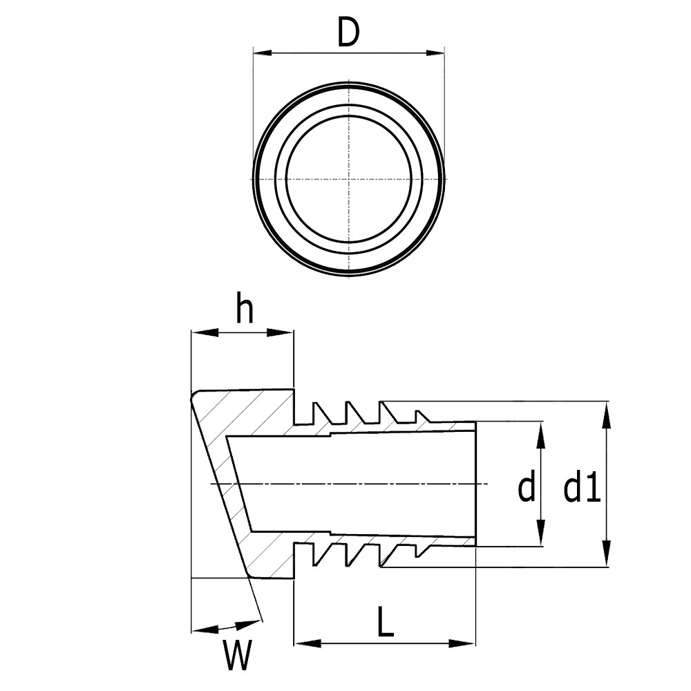 Embout à ailettes rond Ø22mm - 1.5-2.0mm - pied oblique 18° - Noir