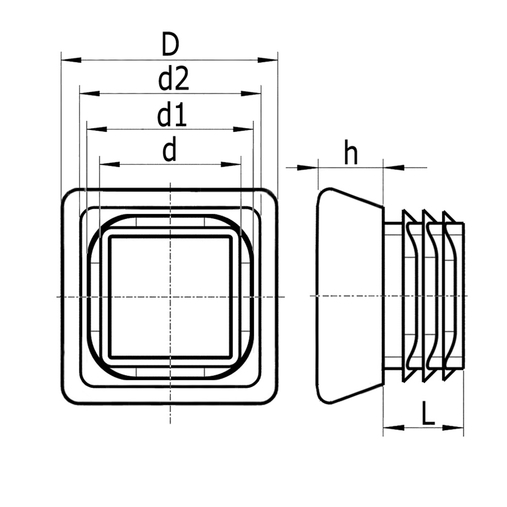 Embout à ailettes carré PE 14x14mm - 1.0-2.0mm - pied élargie - Noir