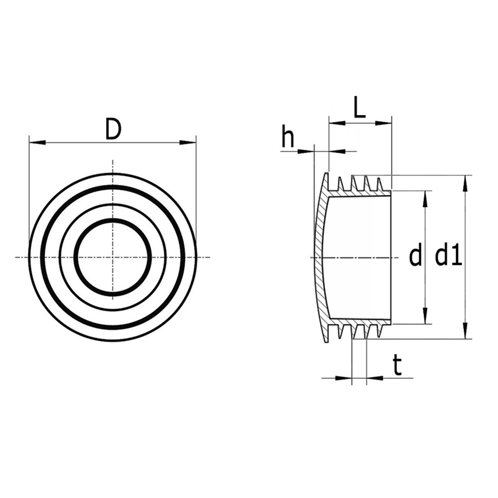 Dimension du tube=Ø-tube extérieur, D=Ø-tête, L=Longueur de tige, h=Hauteur de tête, T=Espacement des ailettes, Exécution=Épaisseur de paroi tube