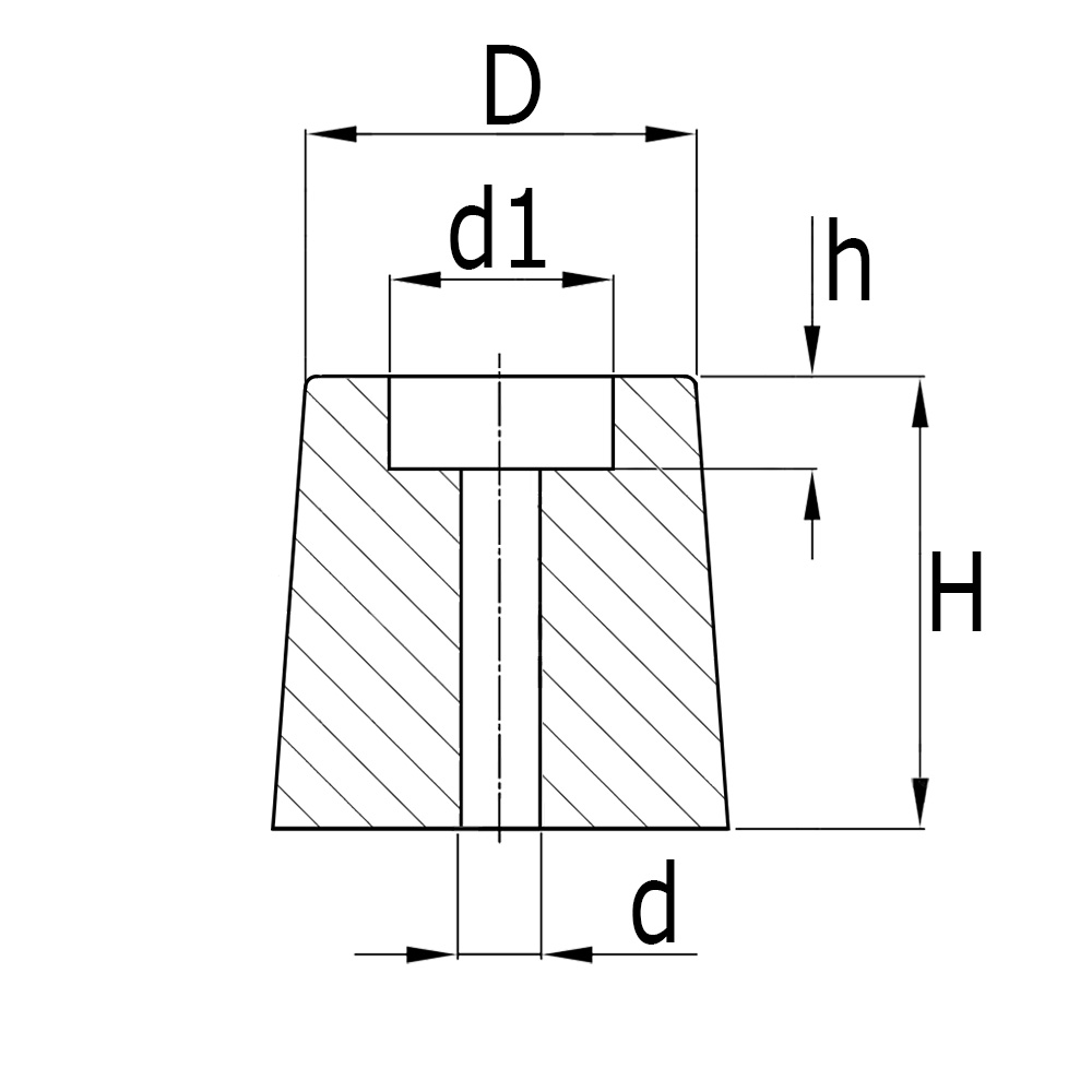 Tampon PE Ø30x23mm - perçage Ø6.1mm - Noir