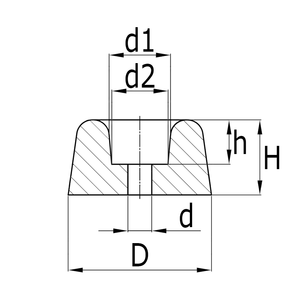 B=Ø-trou fraisé grand, B=Profondeur trou fraisé , C=Ø-trou fraisé petit, D=Ø, D=Ø-perçage, H=Hauteur