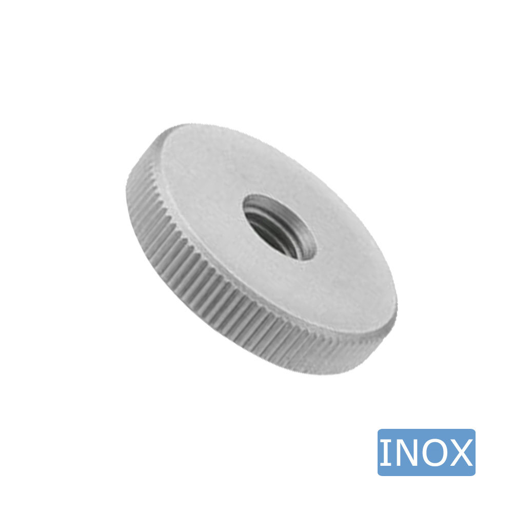 Écrou moleté bas Inox A1 Ø20mm - manchon fileté M5 - Brut