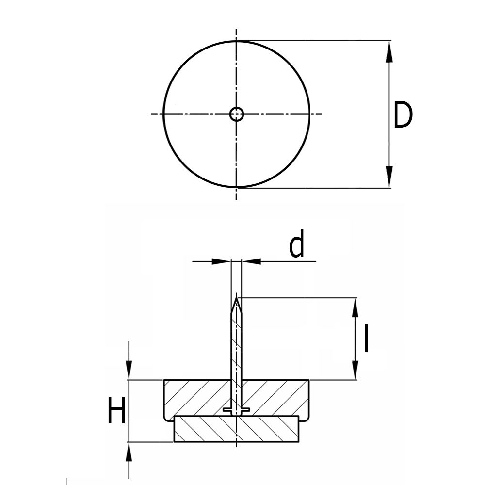 D=Ø-surface de glissement, D=Ø-vis, H=Hauteur, l=Longeur clou