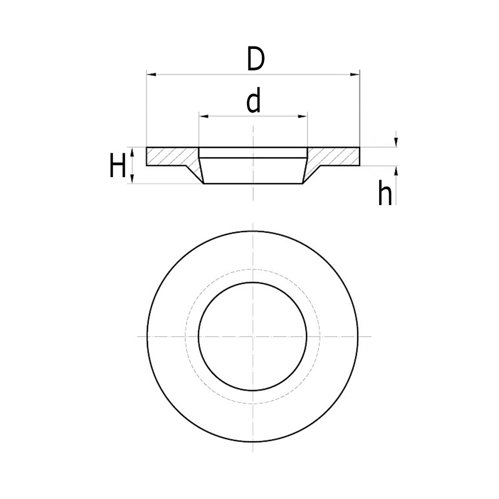 D=Ø-extérieur, d=Ø-trou, H=Hauteur totale, h=Hauteur de rondelle, M=adapté pour dimension de filetage