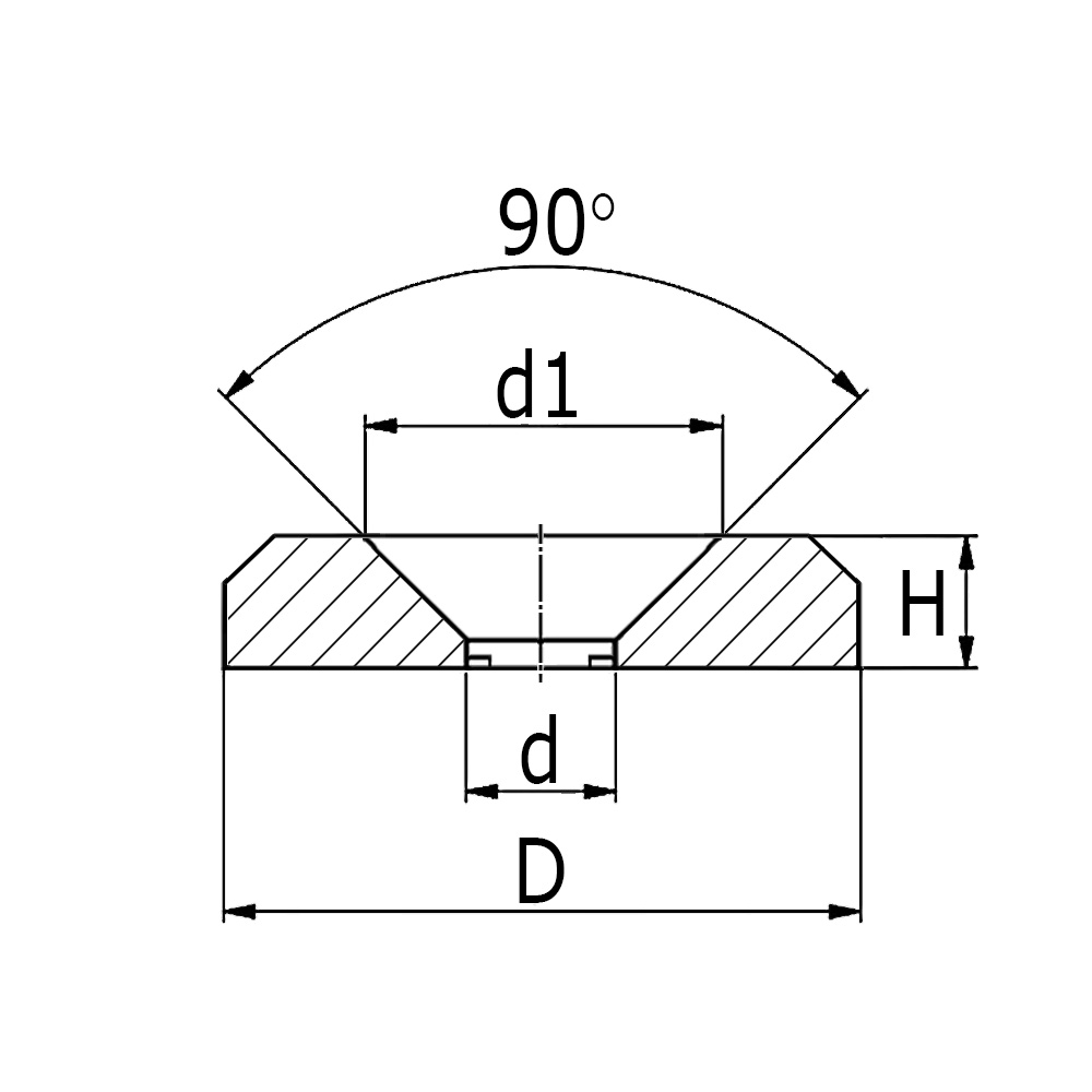 D=Ø-extérieur, D=Ø-perçage, D1=Ø-dessus, H=Hauteur totale , h=Hauteur, M=Convient pour filetage métrique