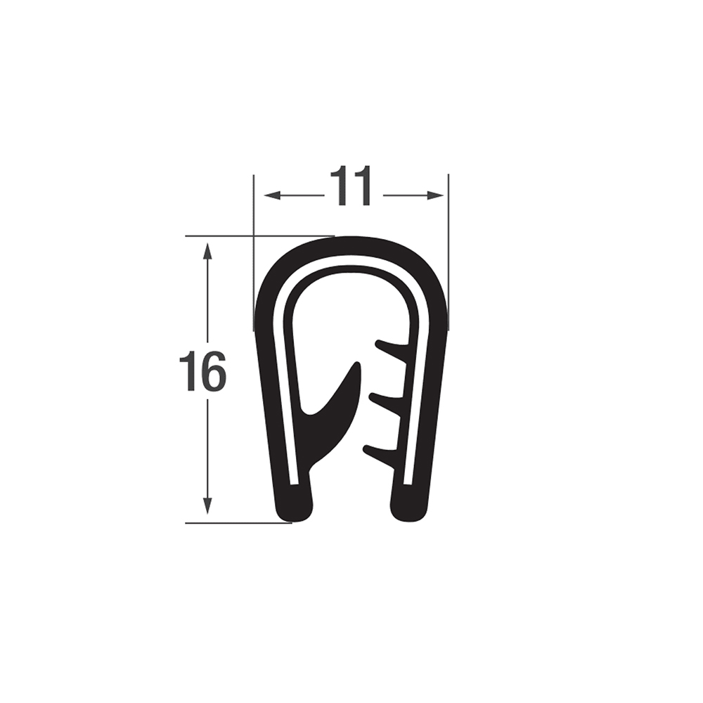 Joint protection bord de tôle PVC-P 15x13mm - avec insert de sangle en acier - plage de serrage 4.0-6.0mm - 1 mètre - Noir