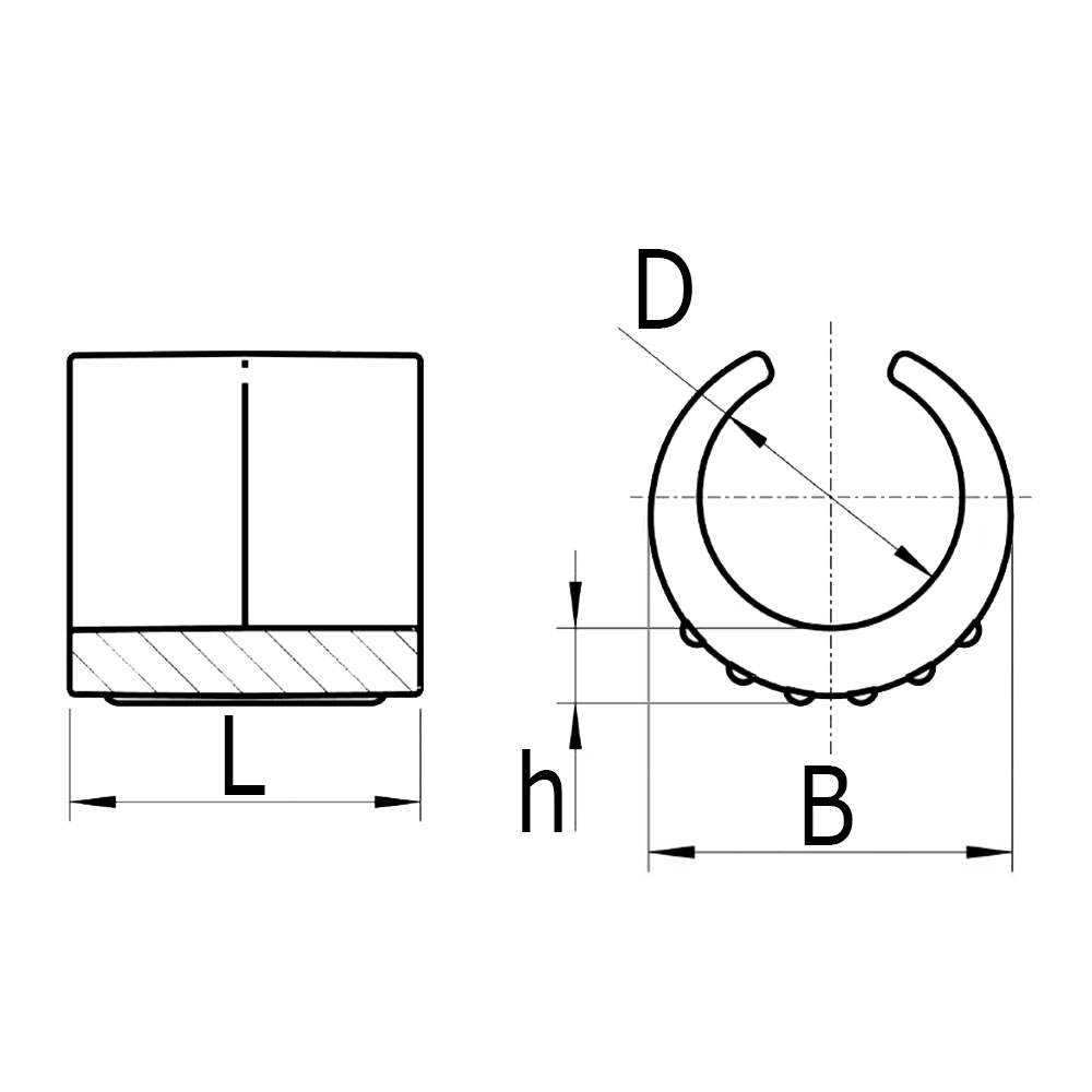 B=Largeur, Dimension du tube=Ø-tube extérieur, h=Épaisseur pied, L=Longeur