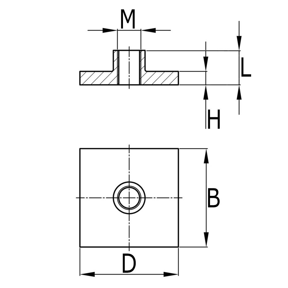 Plaque de soudure carré Inox 40x40mm - fileté M12